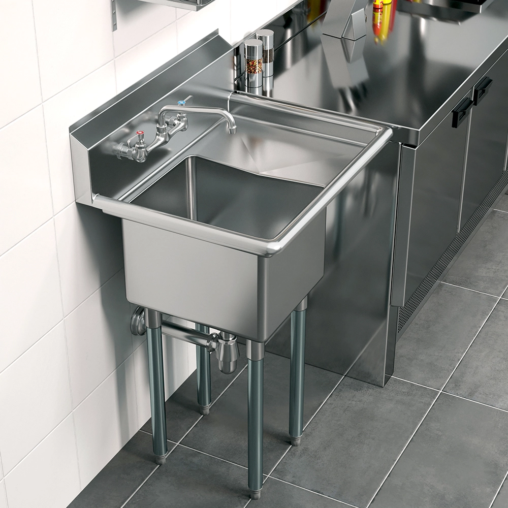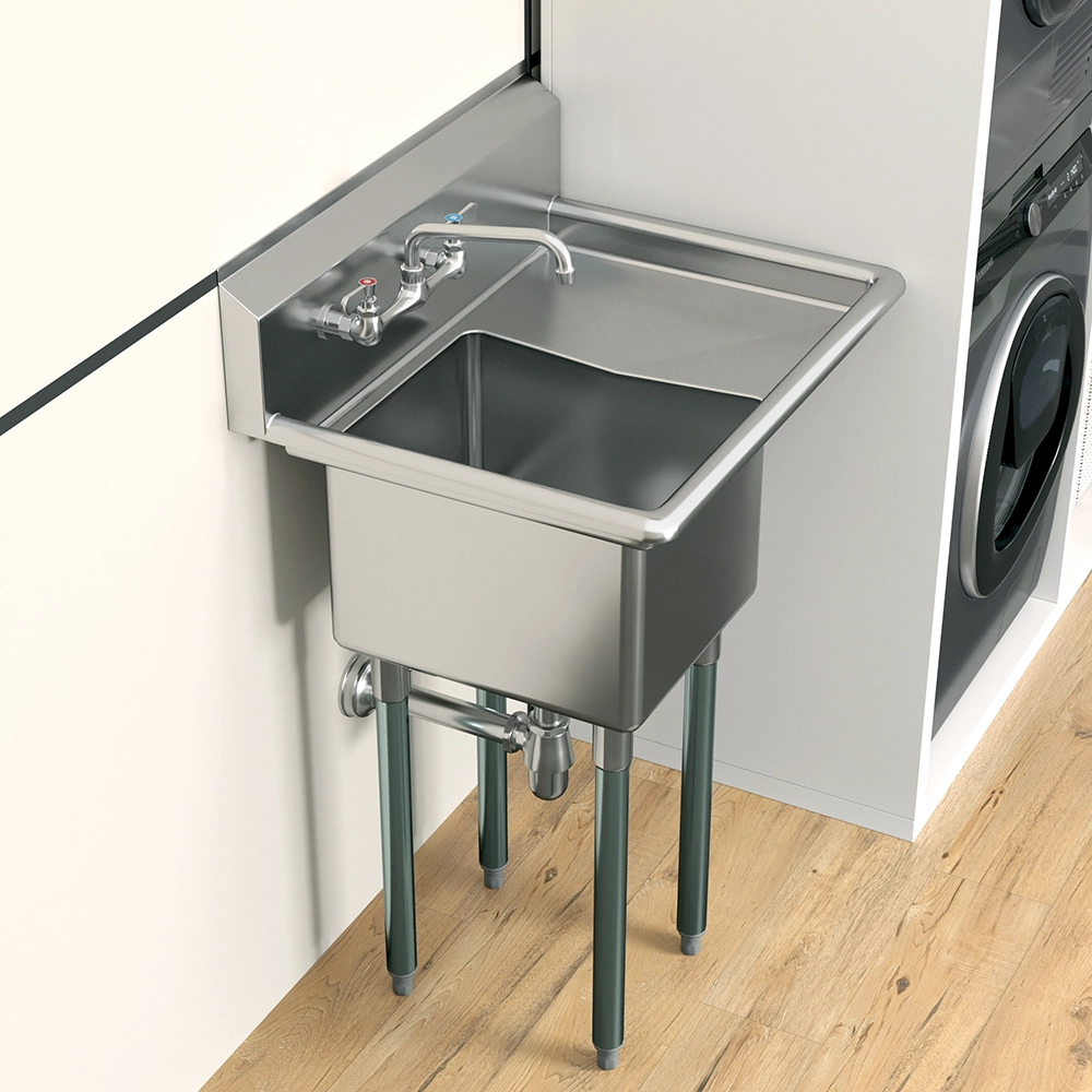 Perfect for restaurants, cafes, utility rooms, and workshops, this sink is built to handle the rigors of daily use while maintaining its sleek appearance. Its compact footprint makes it a versatile choice for spaces where efficiency and organization are essential.