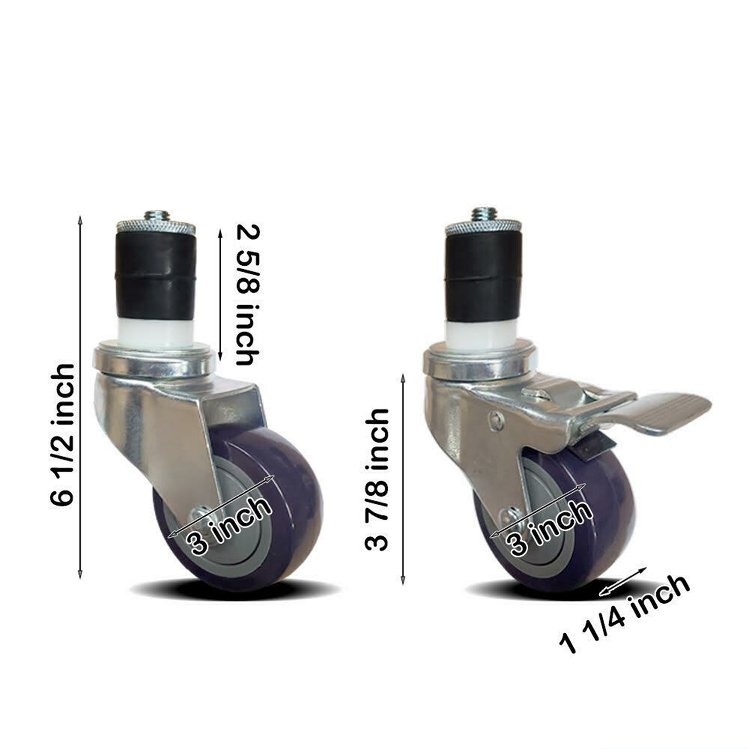 Each caster is crafted from qualty materials to ensure long-lasting performance under heavy loads. The 3″ diameter wheels provide stability and smooth rolling across various floor surfaces, allowing you to move your work table effortlessly. Whether you need to reposition your table for cleaning, rearrange your workspace, or transport heavy equipment, these casters provide the necessary mobility and convenience.