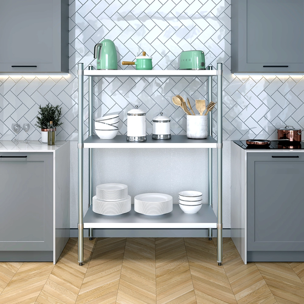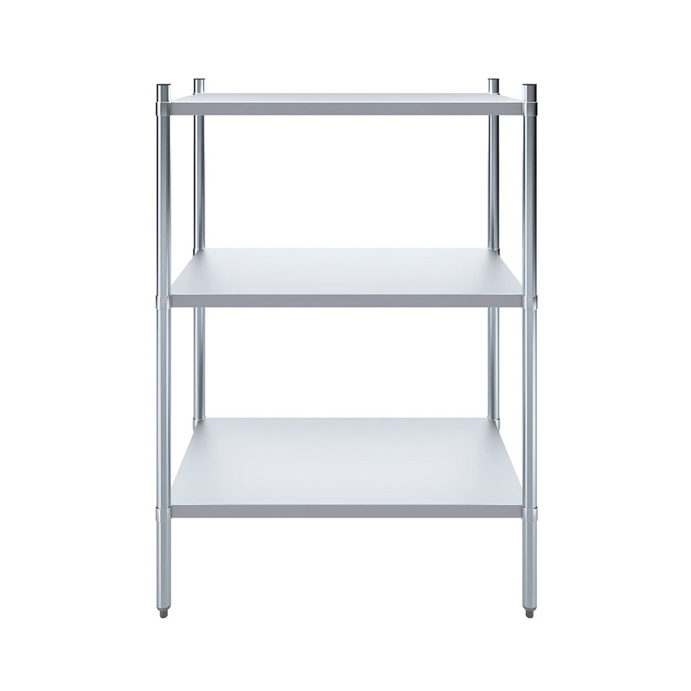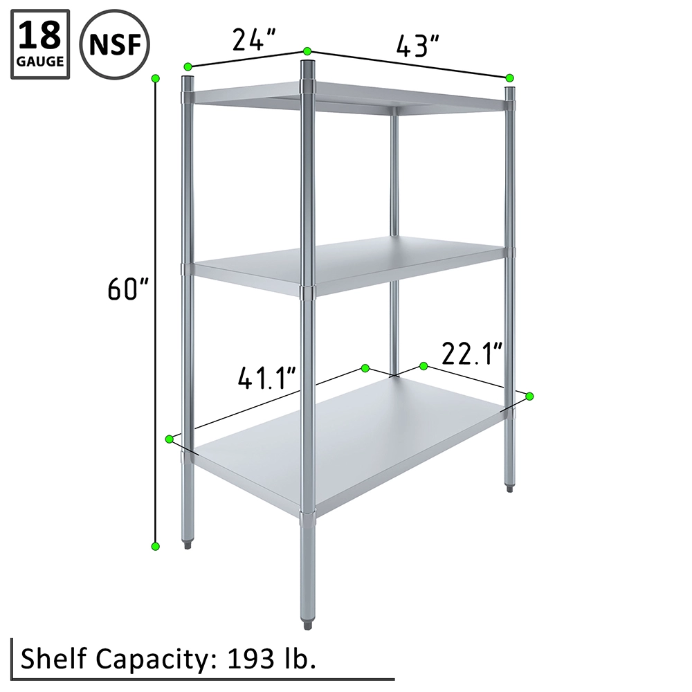 The 3-Tier Galvanized Steel Dry Storage Unit, measuring 24 in. x 43 in. x 60 in., is a strong and reliable storage solution designed to meet the needs of commercial kitchens, food service establishments, and utility spaces. Built from 18GA galvanized steel, this unit offers excellent resistance to corrosion, moisture, and wear, making it ideal for dry storage in high-use environments.