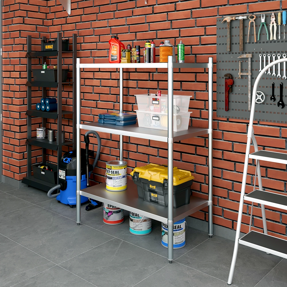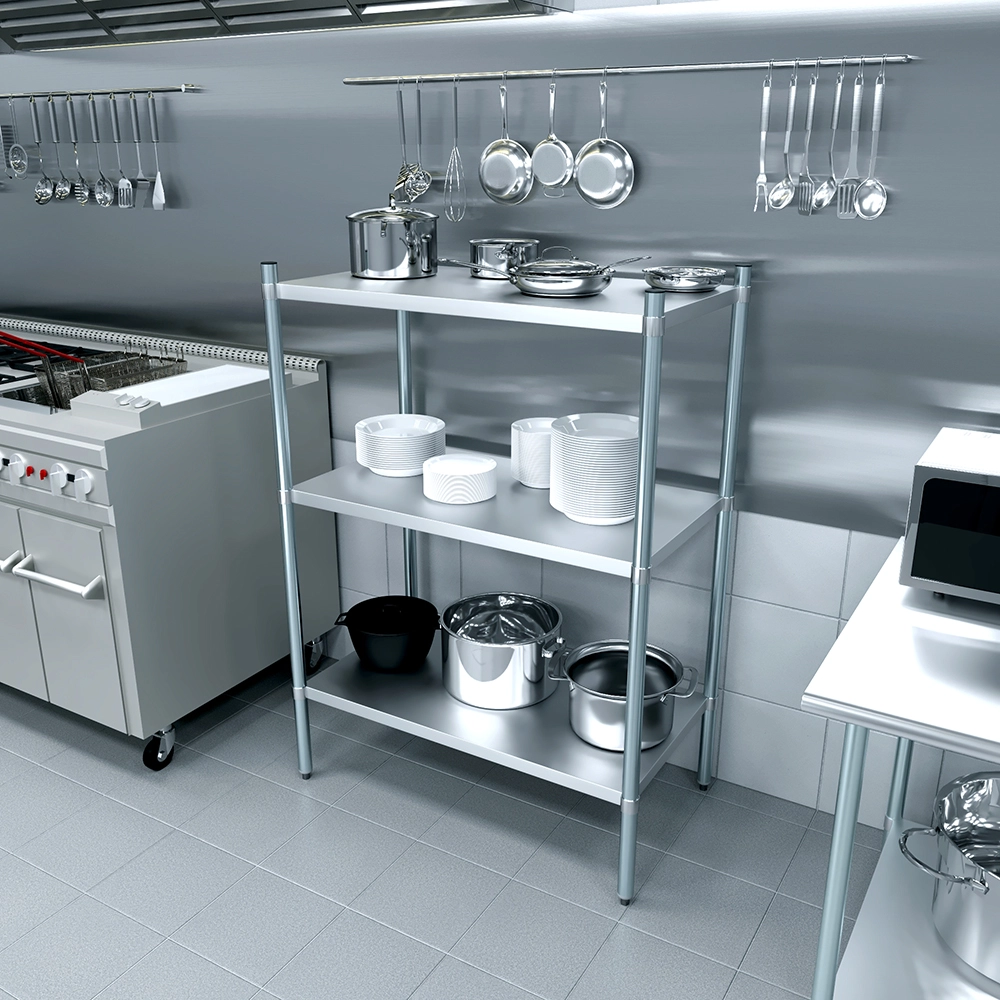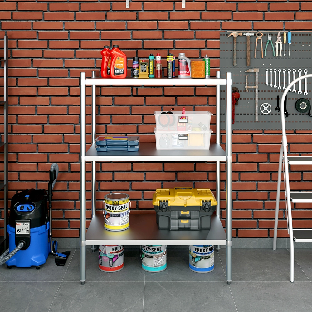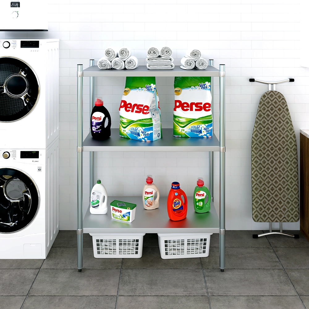 The 3-Tier Galvanized Steel Dry Storage Unit, measuring 24 in. x 43 in. x 60 in., is a strong and reliable storage solution designed to meet the needs of commercial kitchens, food service establishments, and utility spaces. Built from 18GA galvanized steel, this unit offers excellent resistance to corrosion, moisture, and wear, making it ideal for dry storage in high-use environments.