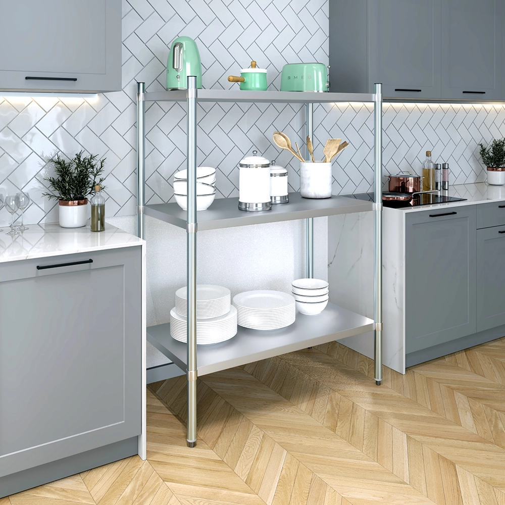 Perfect for restaurants, warehouses, and institutional kitchens, this dry storage unit combines durability with practicality. Its open design allows for quick access and visual inventory management, while its compact footprint maximizes storage efficiency without taking up valuable floor space. A dependable solution for organized, hygienic storage.