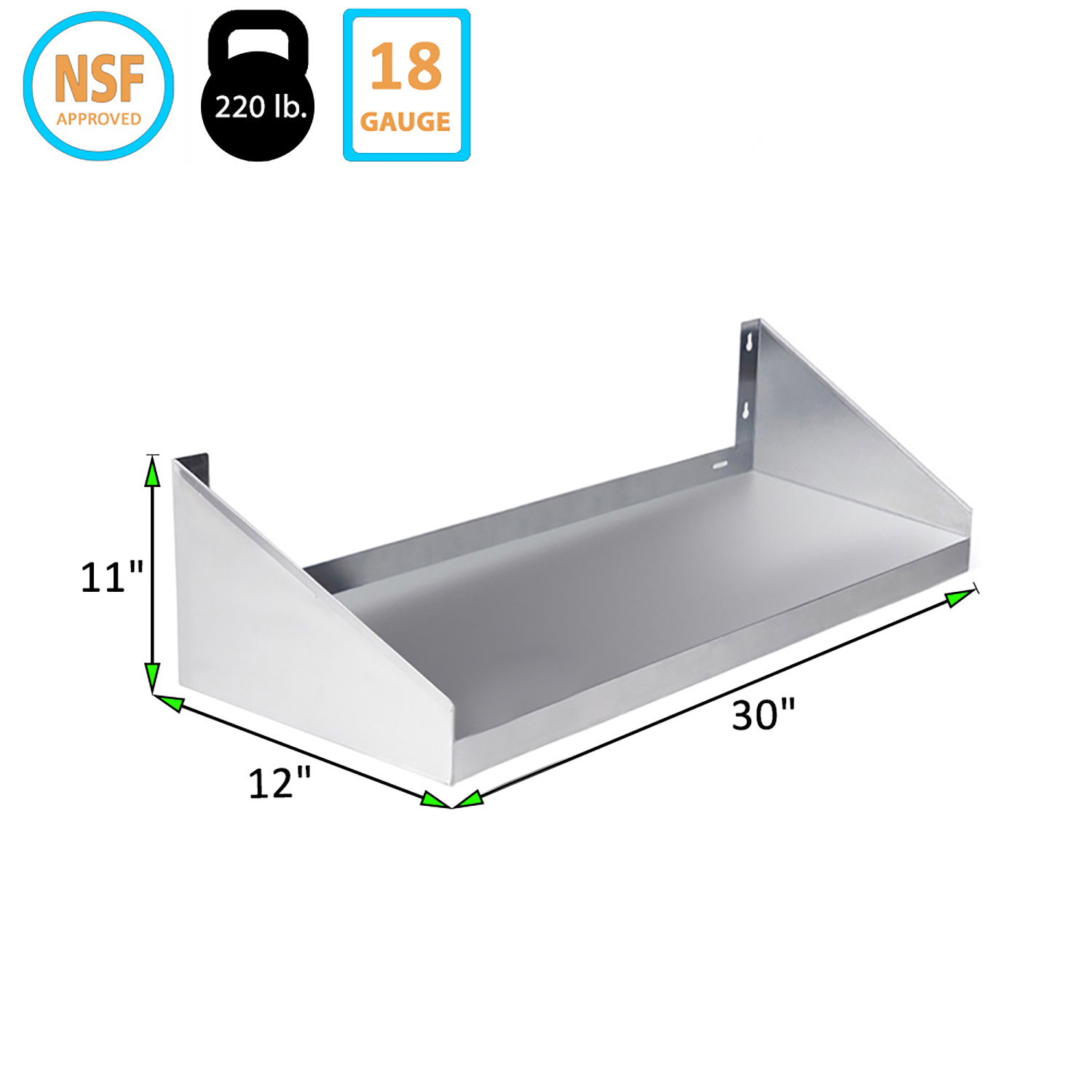 Introducing our 30″ Long x 12″ Deep Stainless Steel Wall Shelf with Side Guards, an essential storage solution designed to enhance organization and efficiency in any environment. This wall shelf is expertly from 18GA/430 stainless steel, ensuring exceptional durability, strength, and resistance to corrosion, making it ideal for both residential and commercial settings.