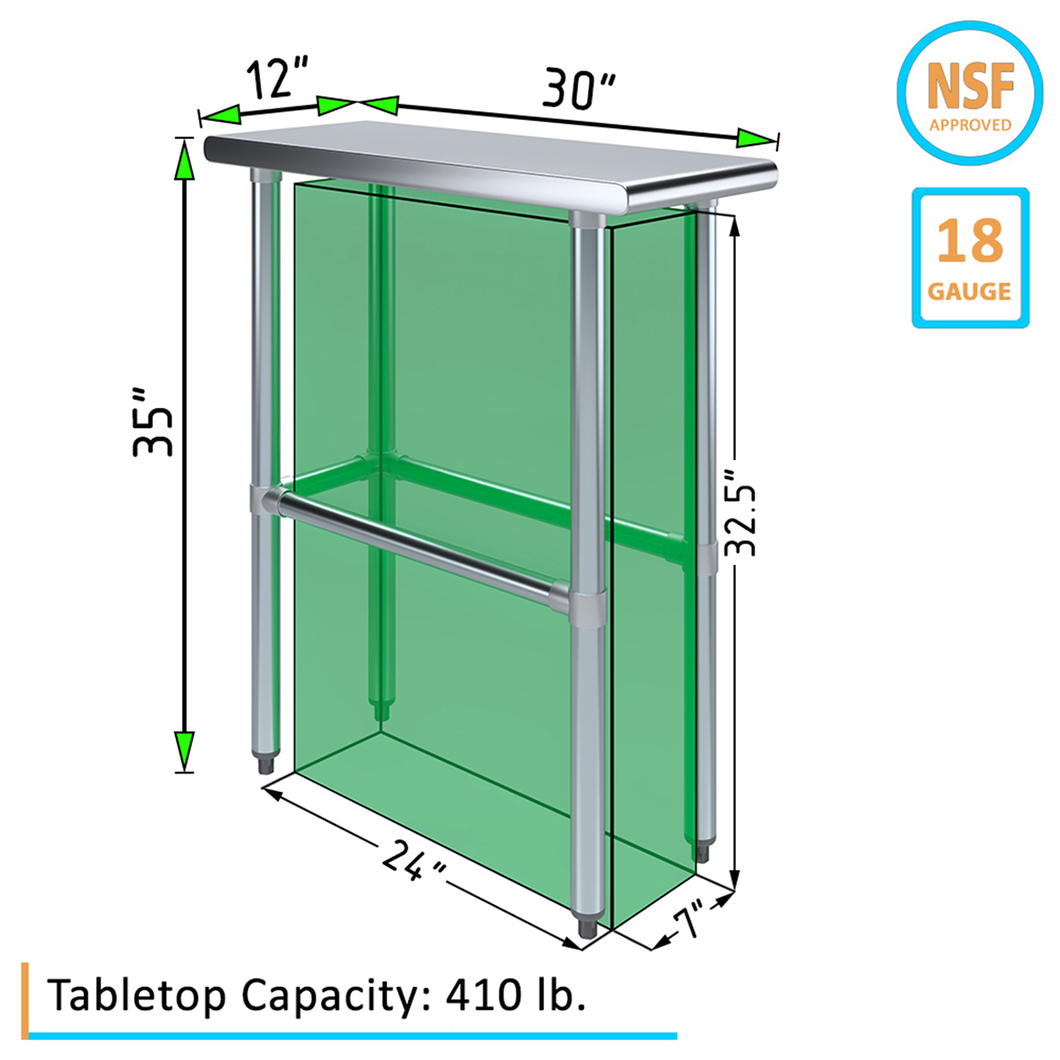 Enhance your workspace with the versatile and durable 30″ x 12″ Stainless Steel Work Table with Open Base. Crafted from 18GA/430 stainless steel, this work table is designed to withstand the rigors of daily use in commercial kitchens, workshops, laboratories, and other demanding environments. Its sleek, smooth surface is not only easy to clean but also resistant, ensuring long-lasting performance and hygiene.