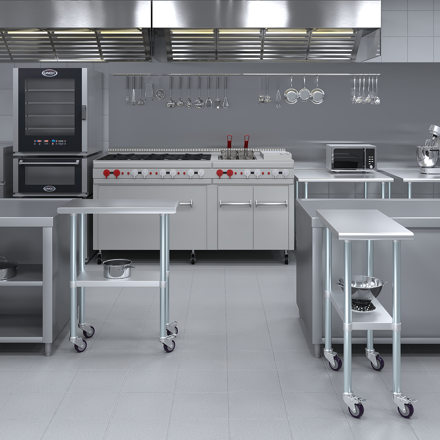 Optimize your workspace with the 30″ x 15″ Stainless Steel Work Table featuring an undershelf and a set of four wheels for enhanced mobility and storage. This work table is constructed from 18GA/430 stainless steel, ensuring a durable, easy-to-clean surface. Designed for demanding environments such as commercial kitchens, laboratories, and workshops, this table guarantees long-lasting performance and reliability.