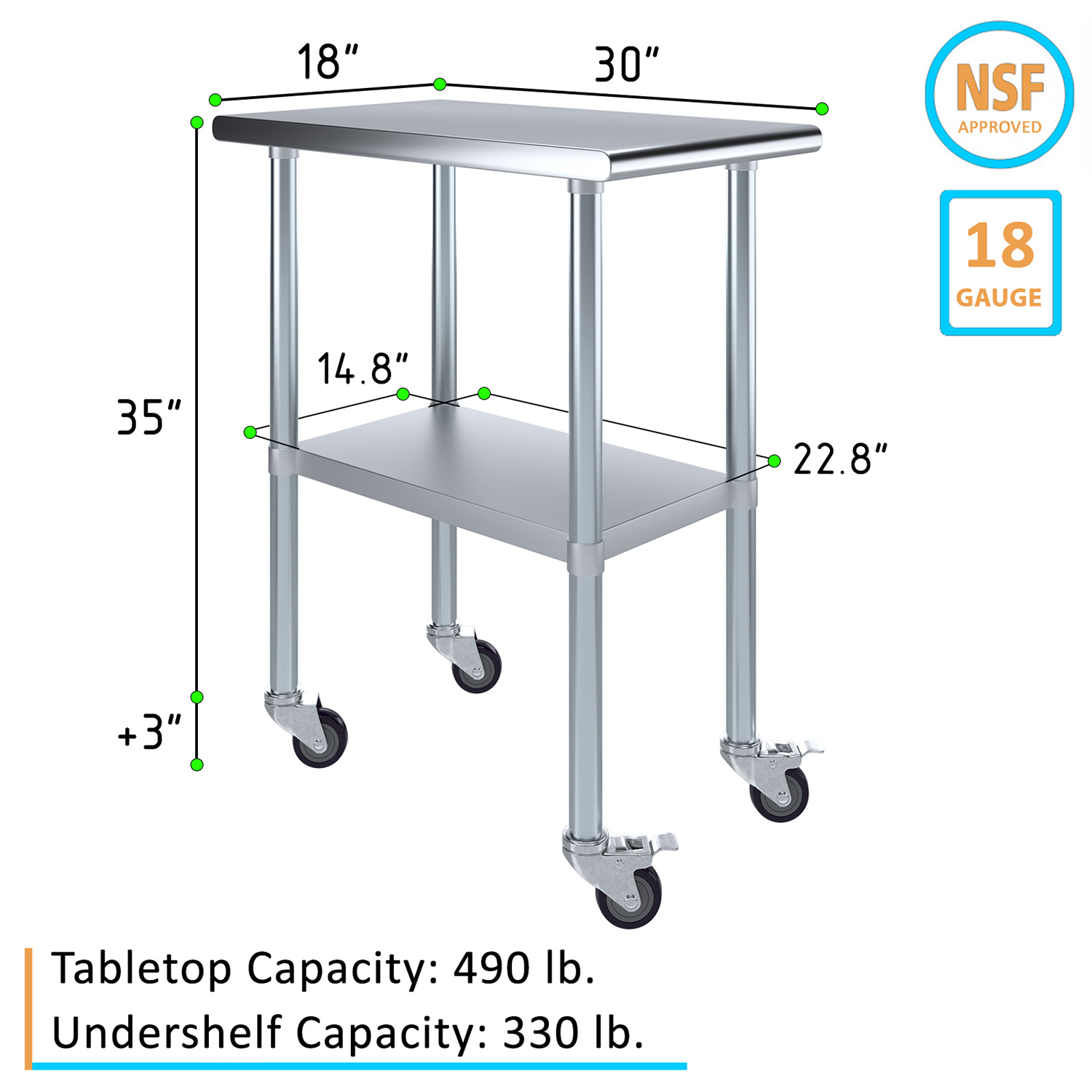 The compact dimensions of 30 inches by 18 inches make this work table an excellent choice for smaller spaces while still providing a robust and functional workspace. Despite its compact footprint, the table offers ample space for a variety of tasks, from food preparation and assembly work to scientific experiments and crafting projects.