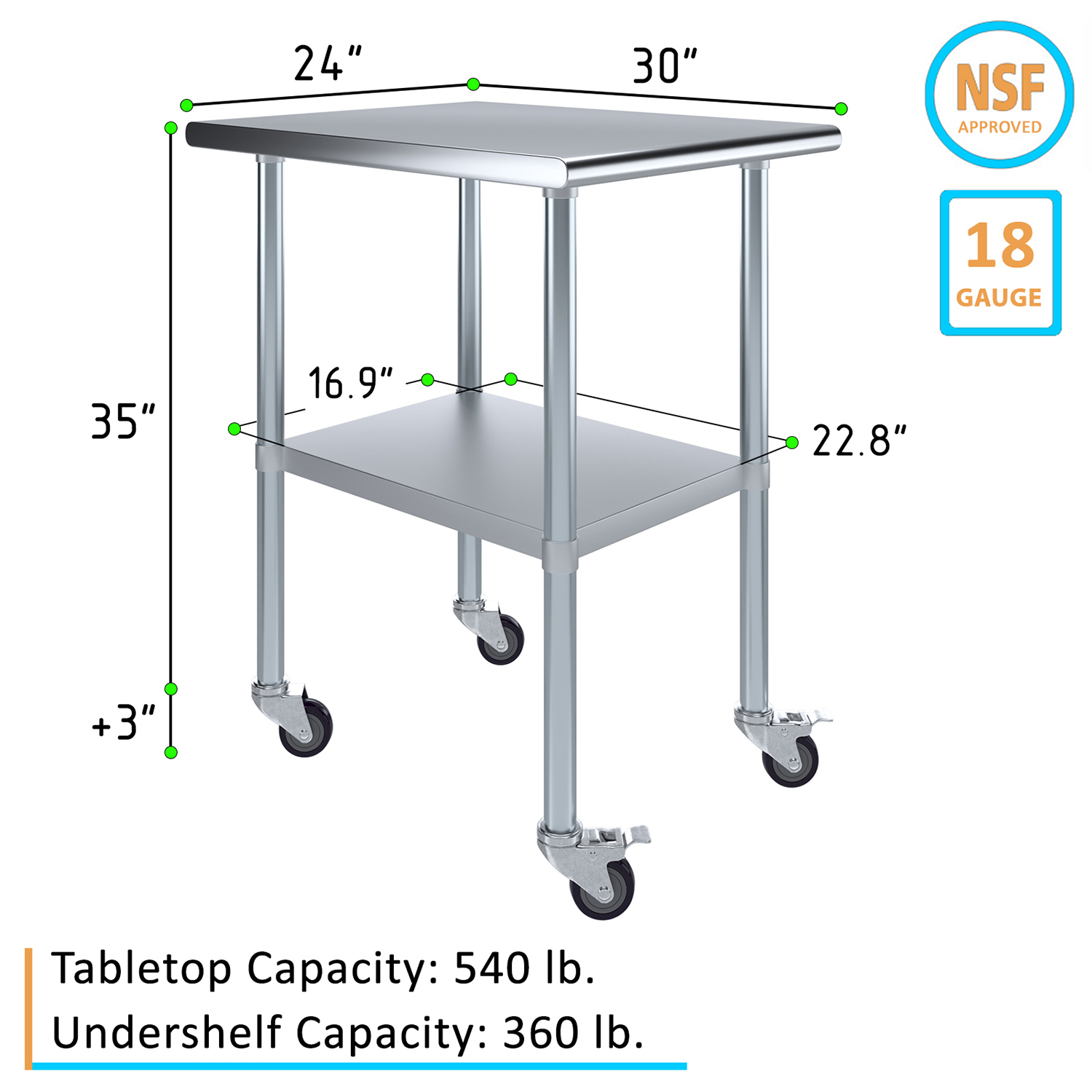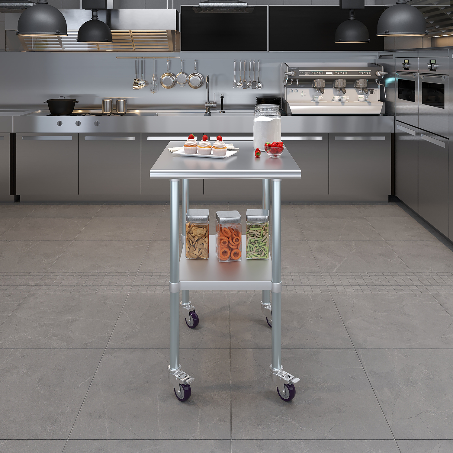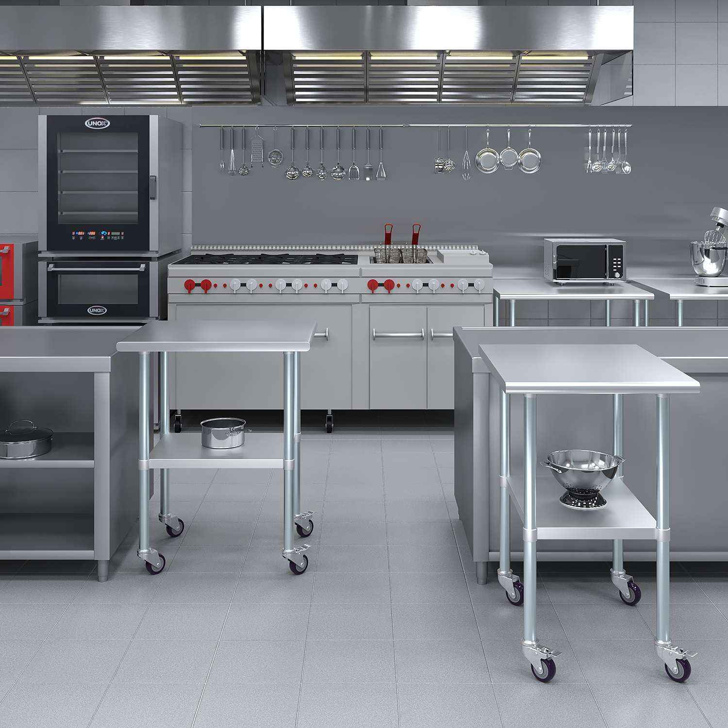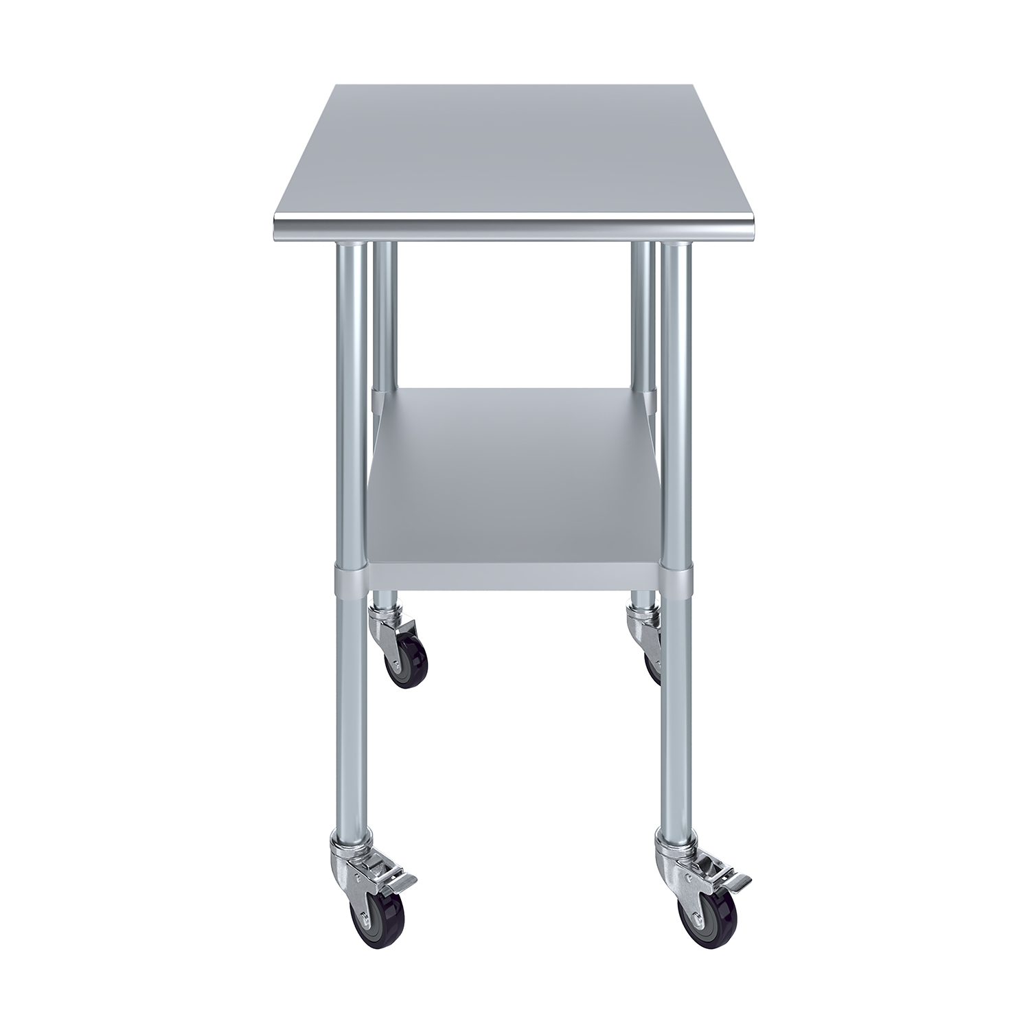 Optimize your workspace with the 30″ x 24″ Stainless Steel Work Table featuring an undershelf and a set of four wheels for enhanced mobility and storage. This work table is constructed from 18GA/430 stainless steel, ensuring a durable, easy-to-clean surface. Designed for demanding environments such as commercial kitchens, laboratories, and workshops, this table guarantees long-lasting performance and reliability.