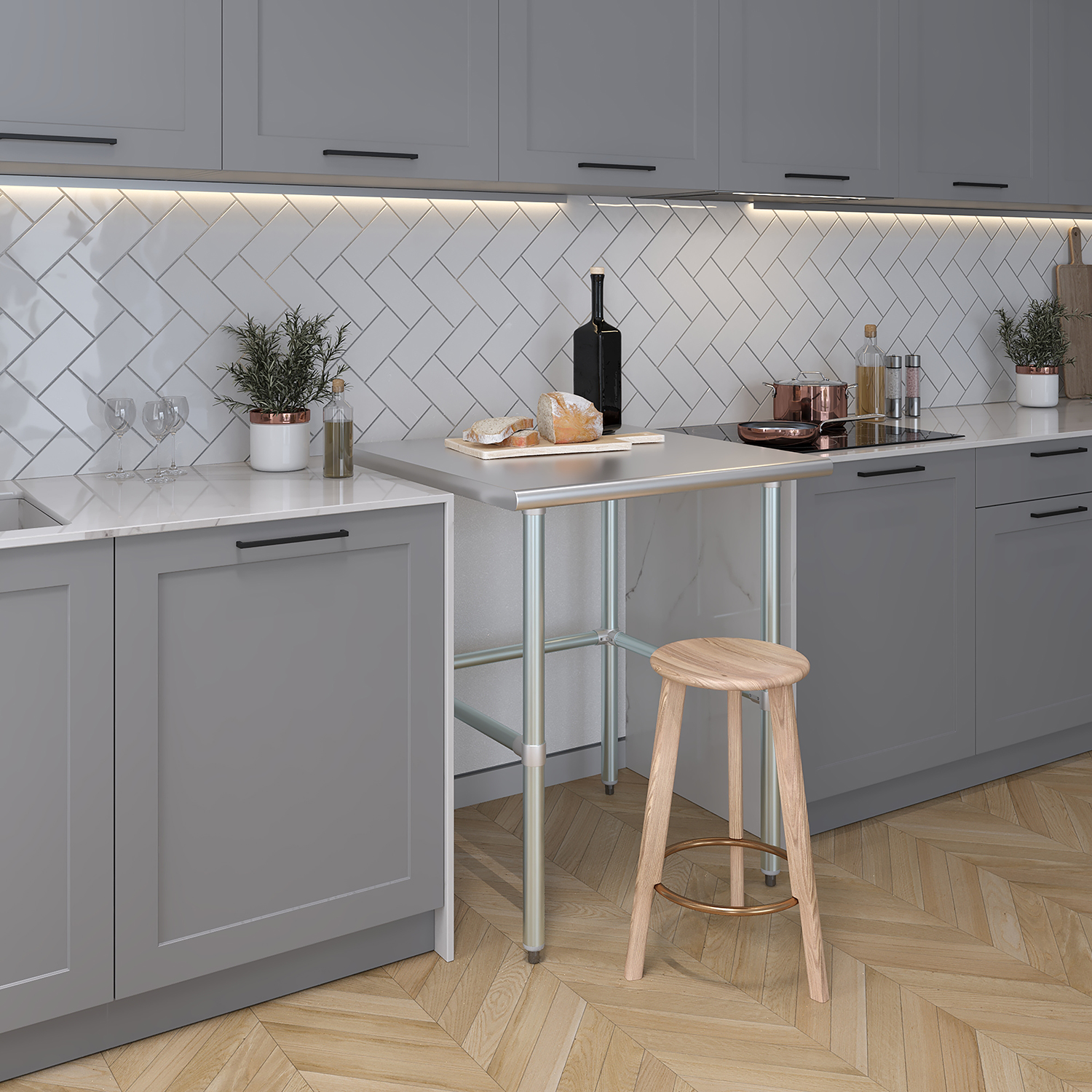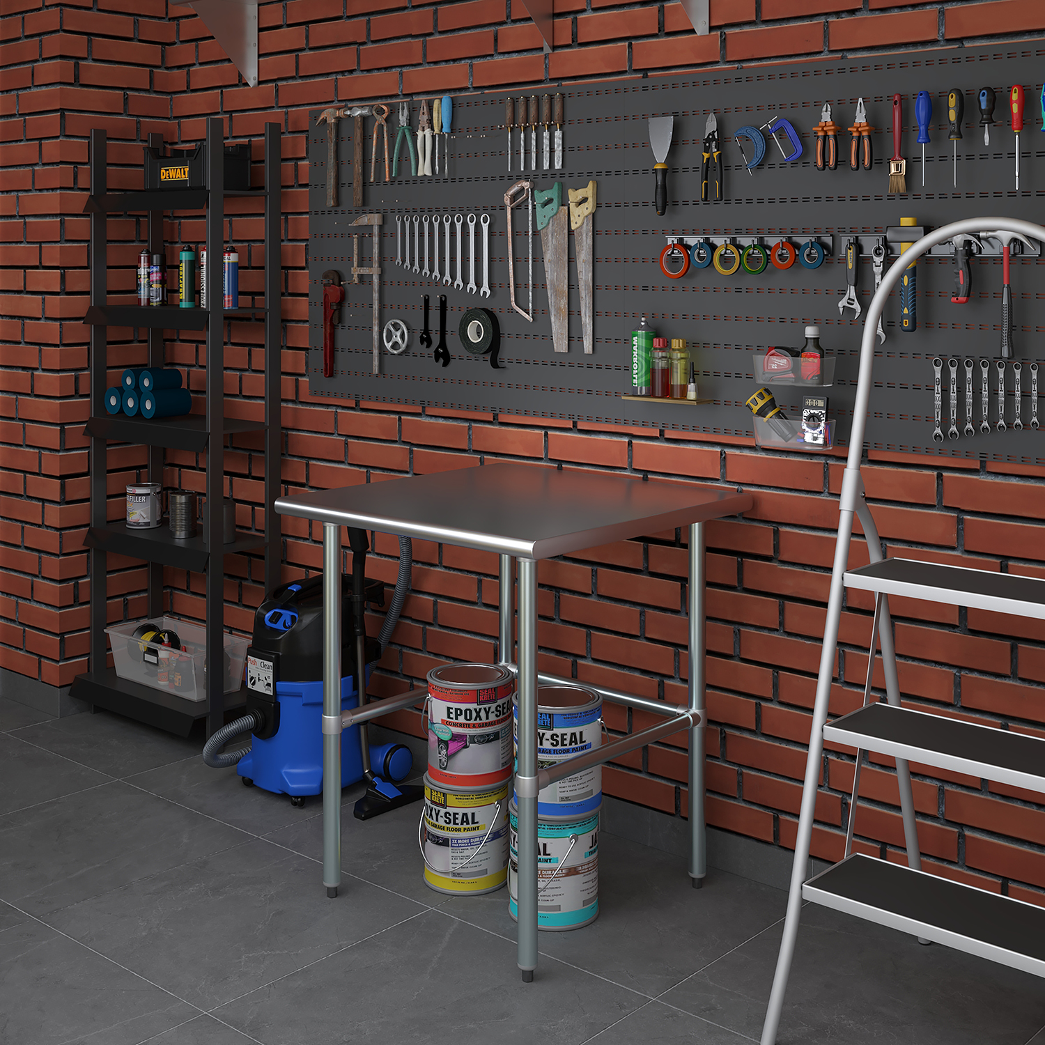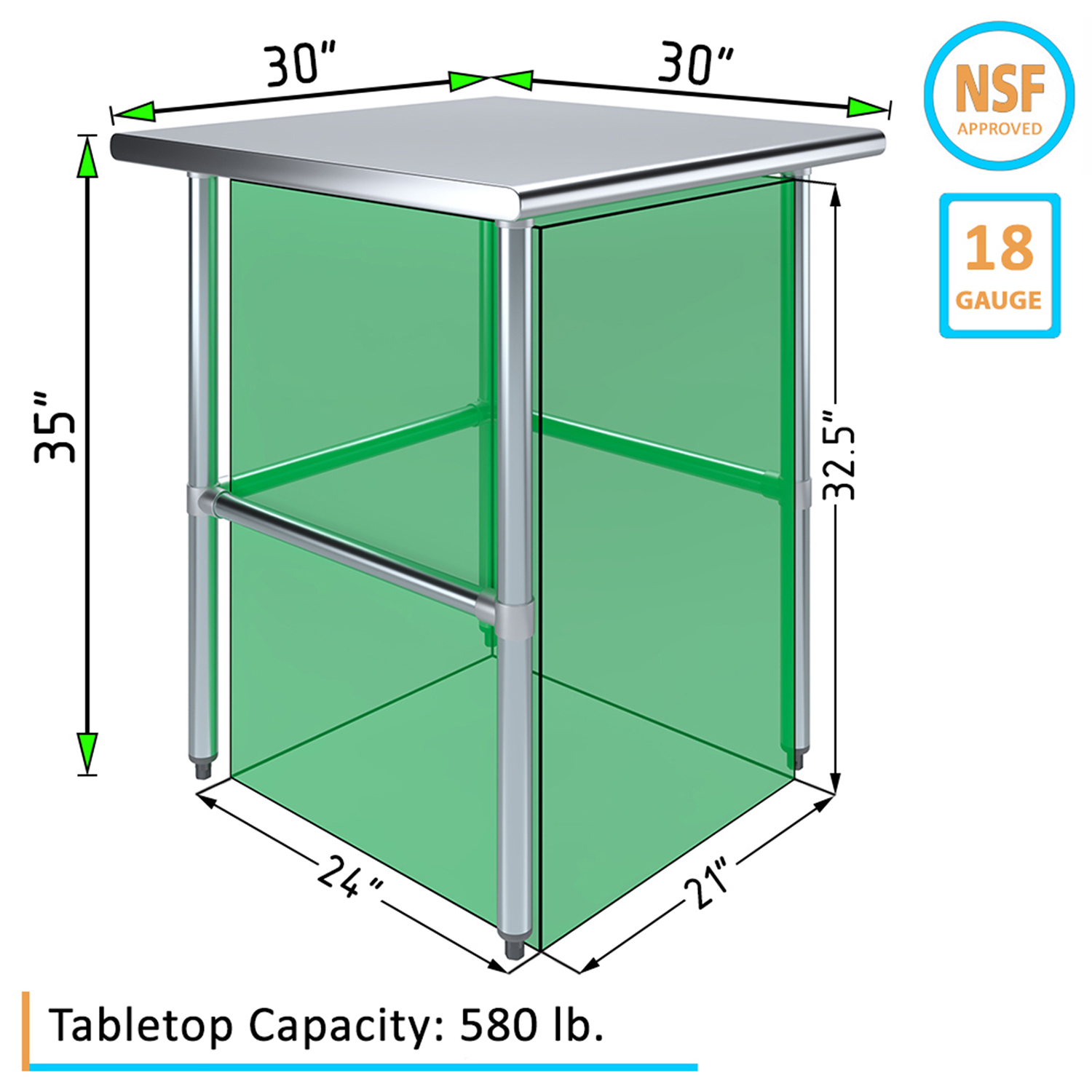 Measuring 30 inches by 30 inches, this work table offers a compact footprint that fits seamlessly into smaller spaces while still providing ample workspace for your projects. The clean, modern design complements any setting, adding a touch of professionalism to your environment. Whether you’re slicing ingredients in a busy kitchen, assembling components in a workshop, or conducting experiments in a lab, this stainless steel work table is a reliable and stylish addition to your workspace.