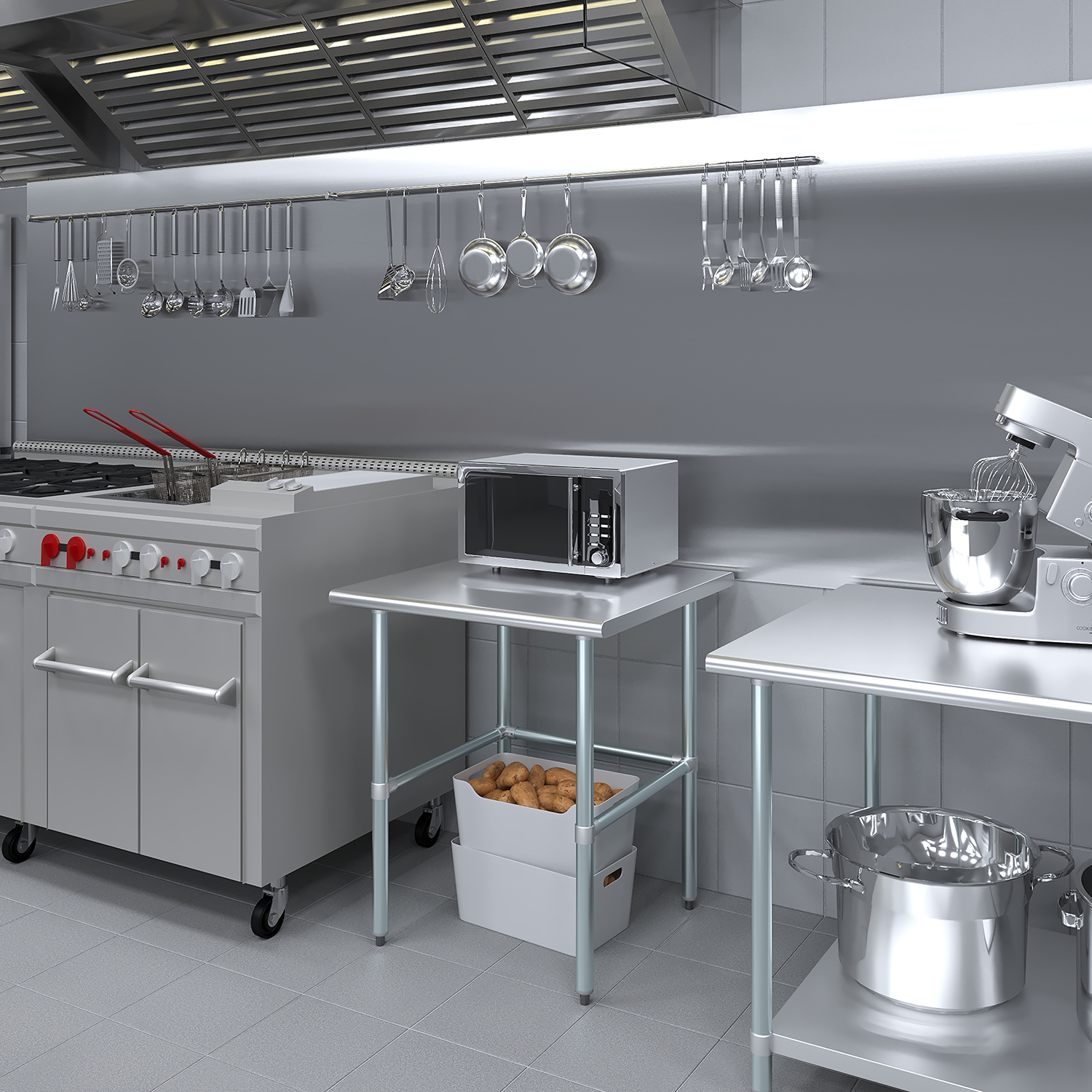 Enhance your workspace with the versatile and durable 30″ x 30″ Stainless Steel Work Table with Open Base. Crafted from 18GA/430 stainless steel, this work table is designed to withstand the rigors of daily use in commercial kitchens, workshops, laboratories, and other demanding environments. Its sleek, smooth surface is not only easy to clean but also resistant, ensuring long-lasting performance and hygiene.