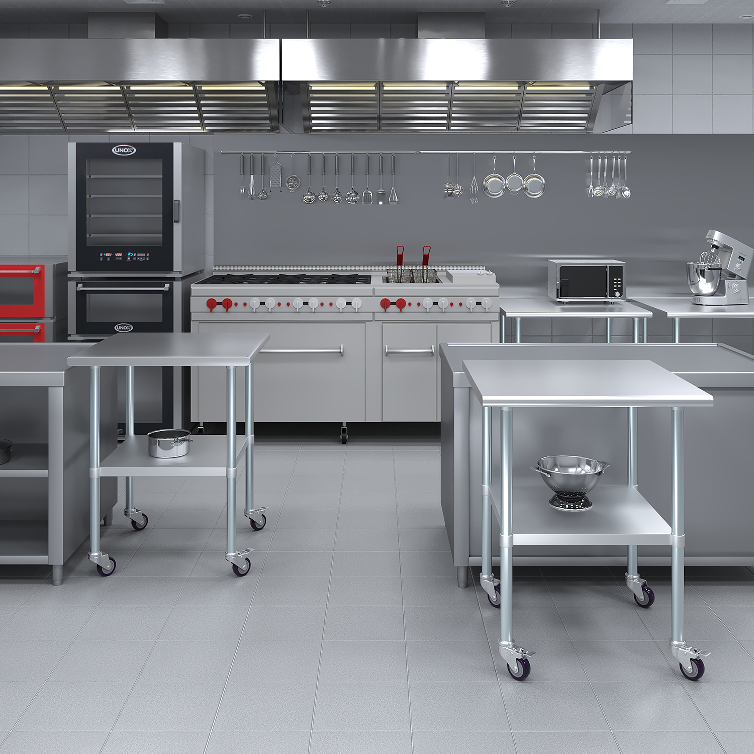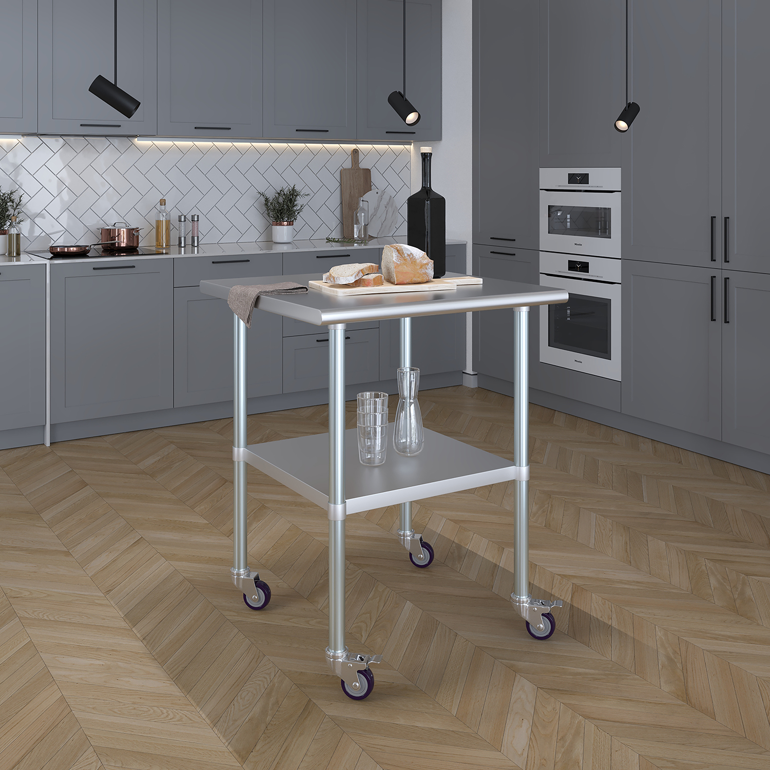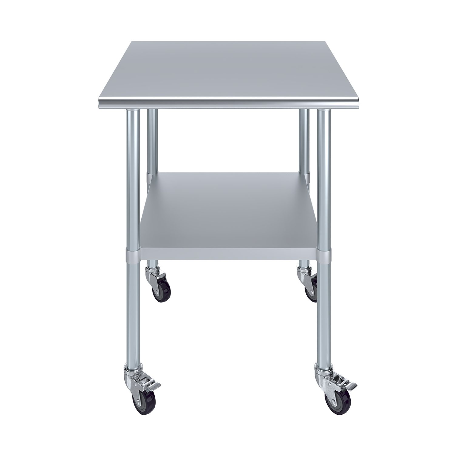Optimize your workspace with the 30″ x 30″ Stainless Steel Work Table featuring an undershelf and a set of four wheels for enhanced mobility and storage. This work table is constructed from 18GA/430 stainless steel, ensuring a durable, easy-to-clean surface. Designed for demanding environments such as commercial kitchens, laboratories, and workshops, this table guarantees long-lasting performance and reliability.