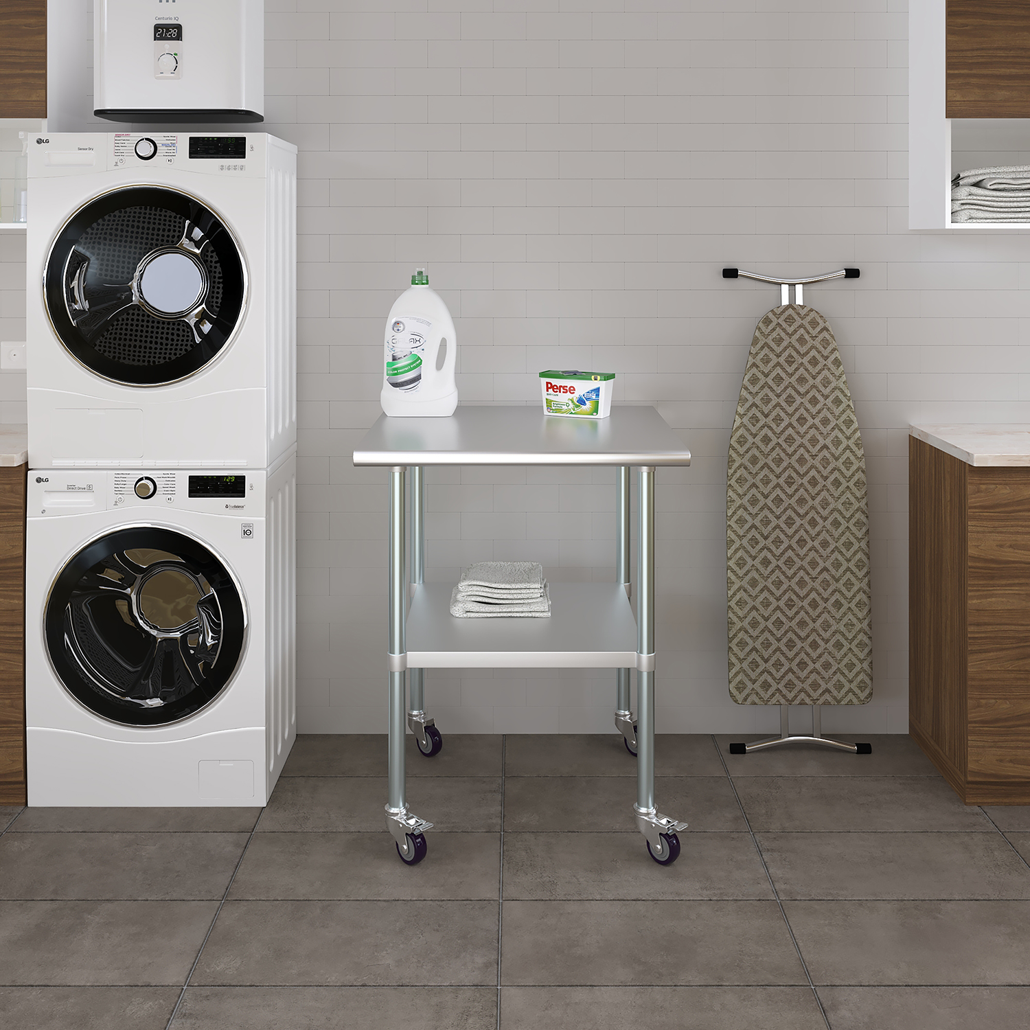 Upgrade your workspace with this versatile and practical work table that combines high functionality with contemporary design. Perfect for enhancing productivity and organization, the 30″ x 30″ Stainless Steel Work Table with Undershelf and Wheels is an indispensable asset for any professional setting, providing durability, convenience, and efficiency in a compact, mobile unit.