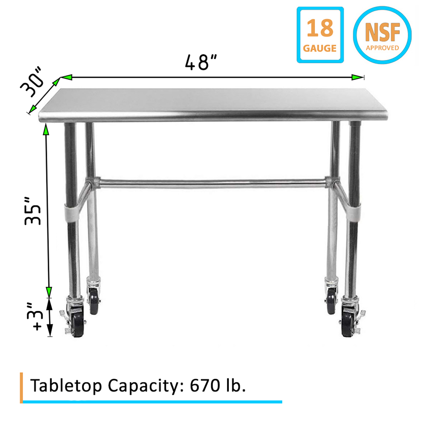 Optimize your workspace with the 30″ x 48″ Stainless Steel Work Table featuring an open base and a set of four wheels for enhanced mobility and versatility. This work table is constructed from 18GA/430 stainless steel, ensuring a durable, easy-to-clean surface. Designed for demanding environments such as commercial kitchens, laboratories, and workshops, this table guarantees long-lasting performance and reliability.