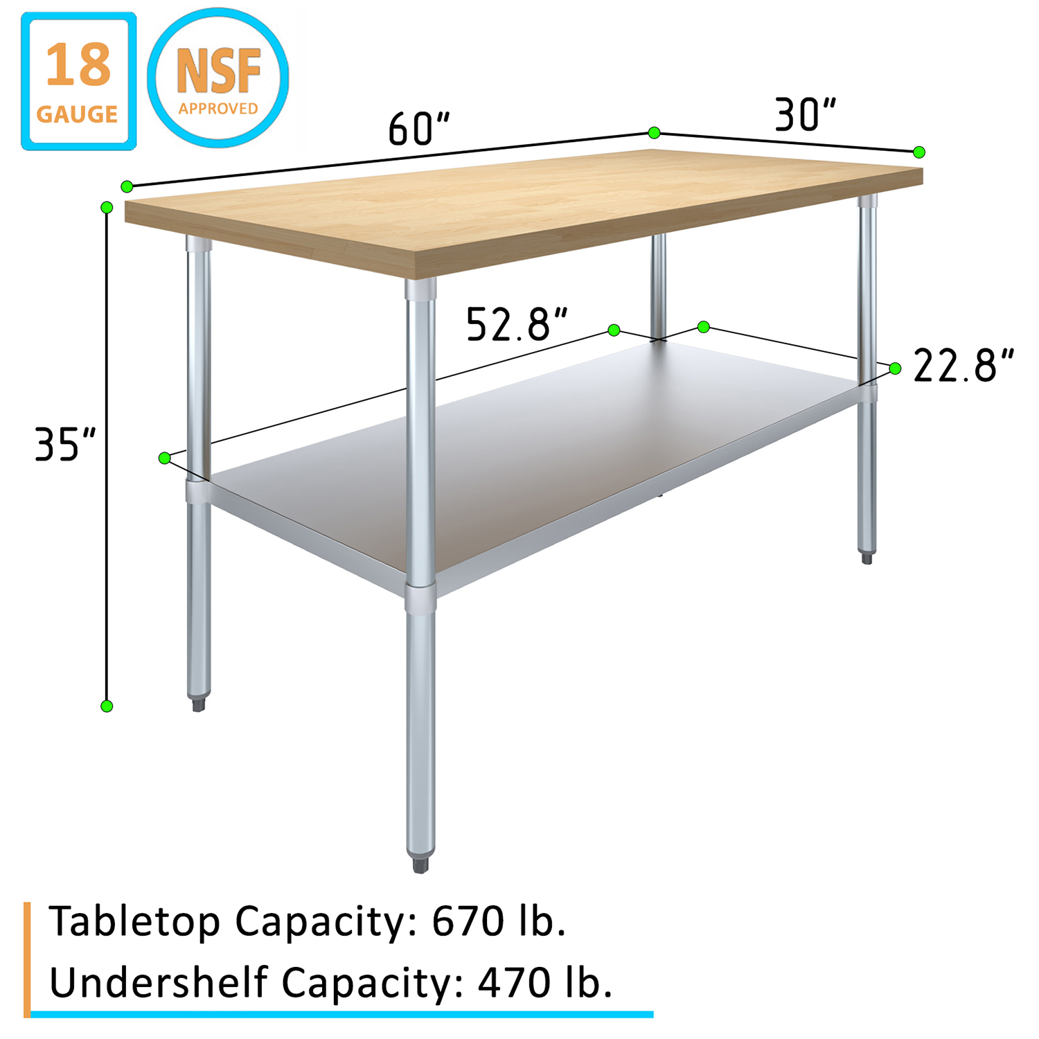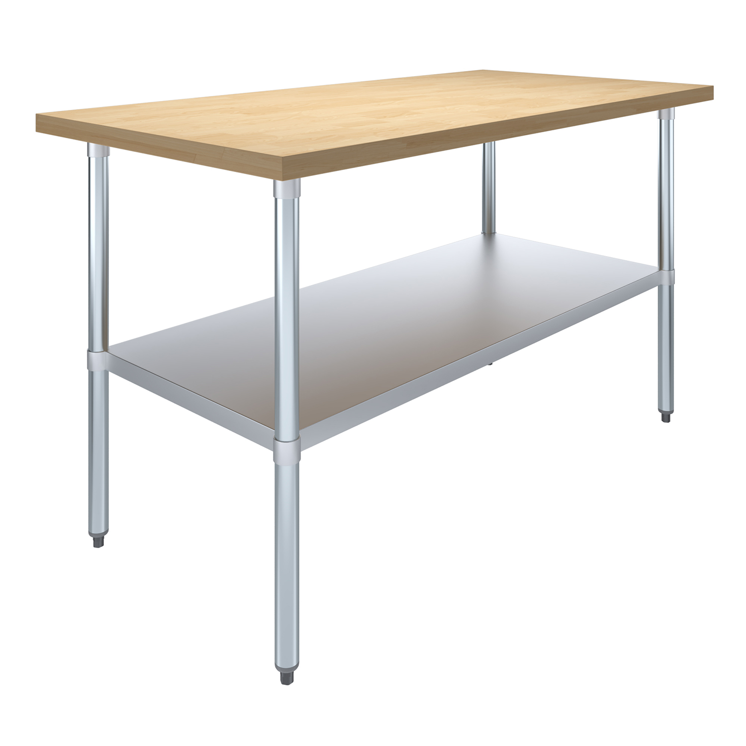 Introducing our 30″ x 60″ Maple Wood Top Work Table with Adjustable Undershelf, the perfect blend of functionality, durability, and style. Designed to meet the demands of busy kitchens, workshops, and commercial environments, this work table features a premium maple wood top that provides a smooth, sturdy surface ideal for a wide range of tasks, from food preparation to crafting and assembly work.