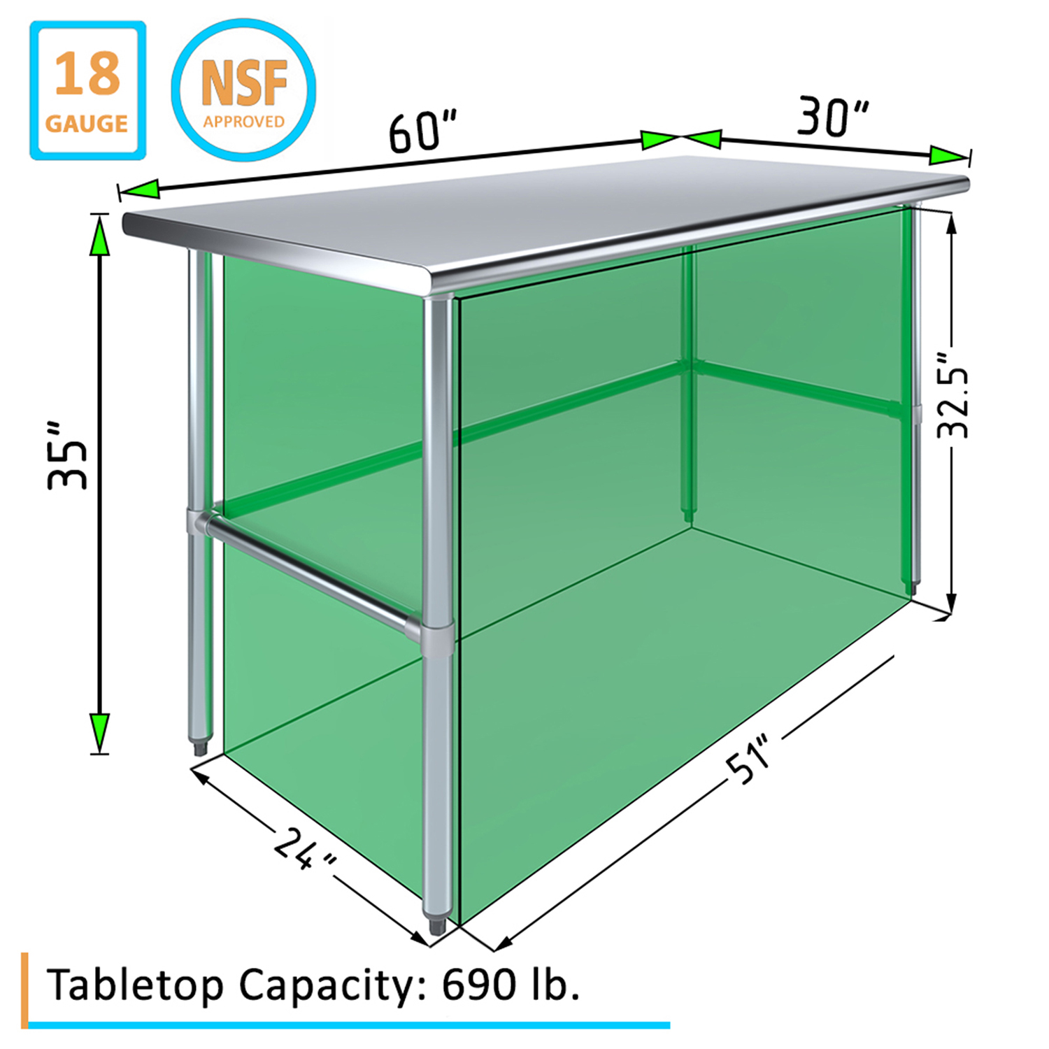 Elevate your workspace with this 30″ x 60″ Stainless Steel Work Table. Designed for durability and efficiency, its 18GA/430 stainless steel surface offers easy cleaning and resistance, making it ideal for various environments. The open base provides ample storage for tools and supplies, enhancing accessibility and organization. Perfect for kitchens, workshops, and labs, this sturdy work table ensures reliable performance and convenience in your daily tasks. Upgrade your setup with a blend of functionality and modern design.