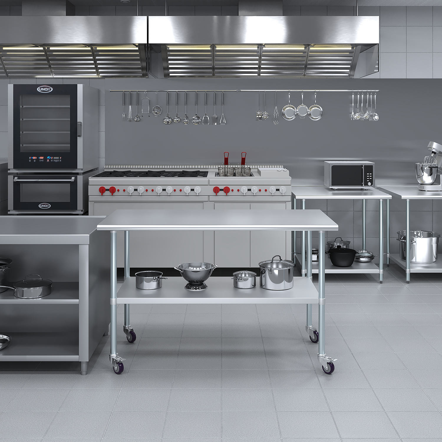 The sleek and modern design of this stainless steel work table not only enhances functionality but also adds a touch of professionalism to any workspace. Whether you’re slicing vegetables in a busy kitchen, conducting research in a lab, or assembling components in a workshop, this work table is a reliable and stylish addition to your environment.