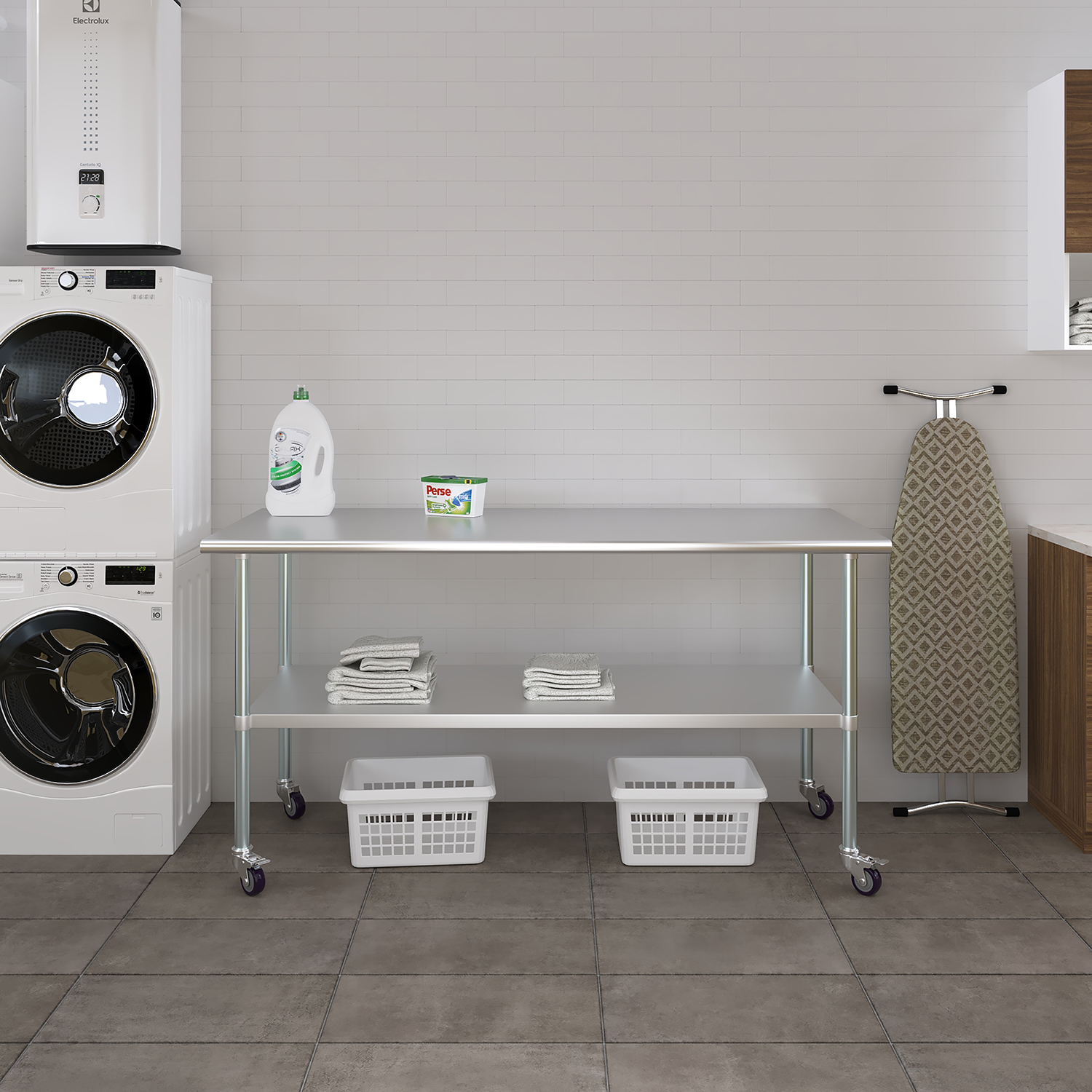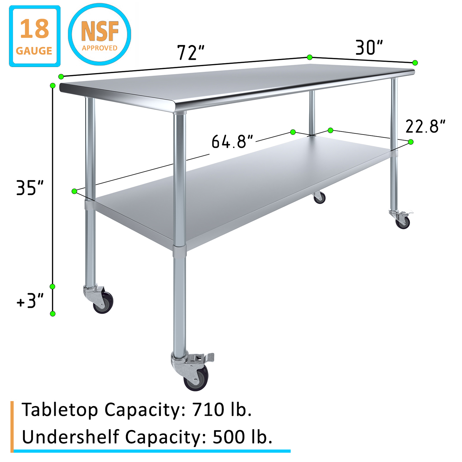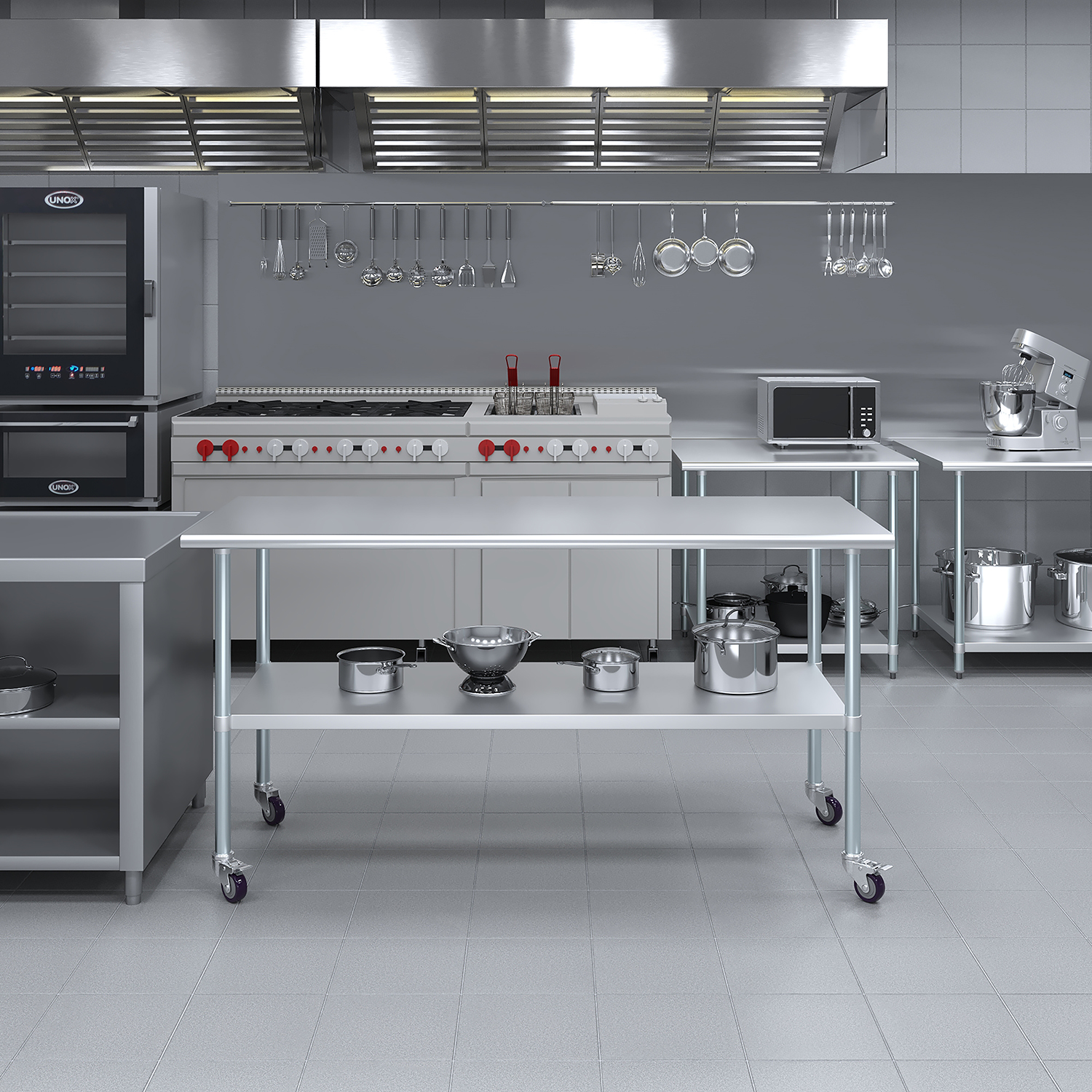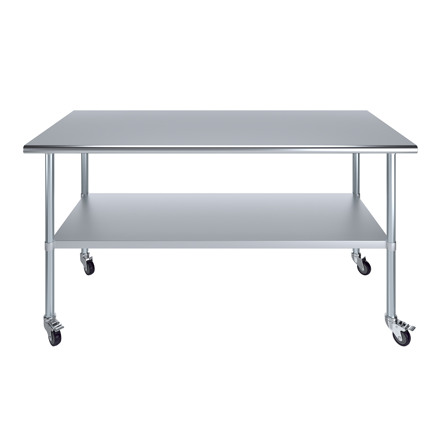 Optimize your workspace with the 30″ x 72″ Stainless Steel Work Table featuring an undershelf and a set of four wheels for enhanced mobility and storage. This work table is constructed from 18GA/430 stainless steel, ensuring a durable, easy-to-clean surface. Designed for demanding environments such as commercial kitchens, laboratories, and workshops, this table guarantees long-lasting performance and reliability.