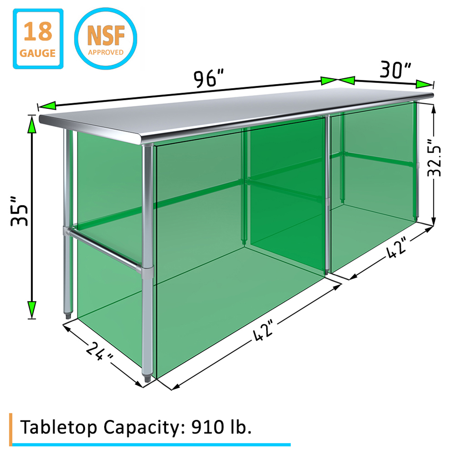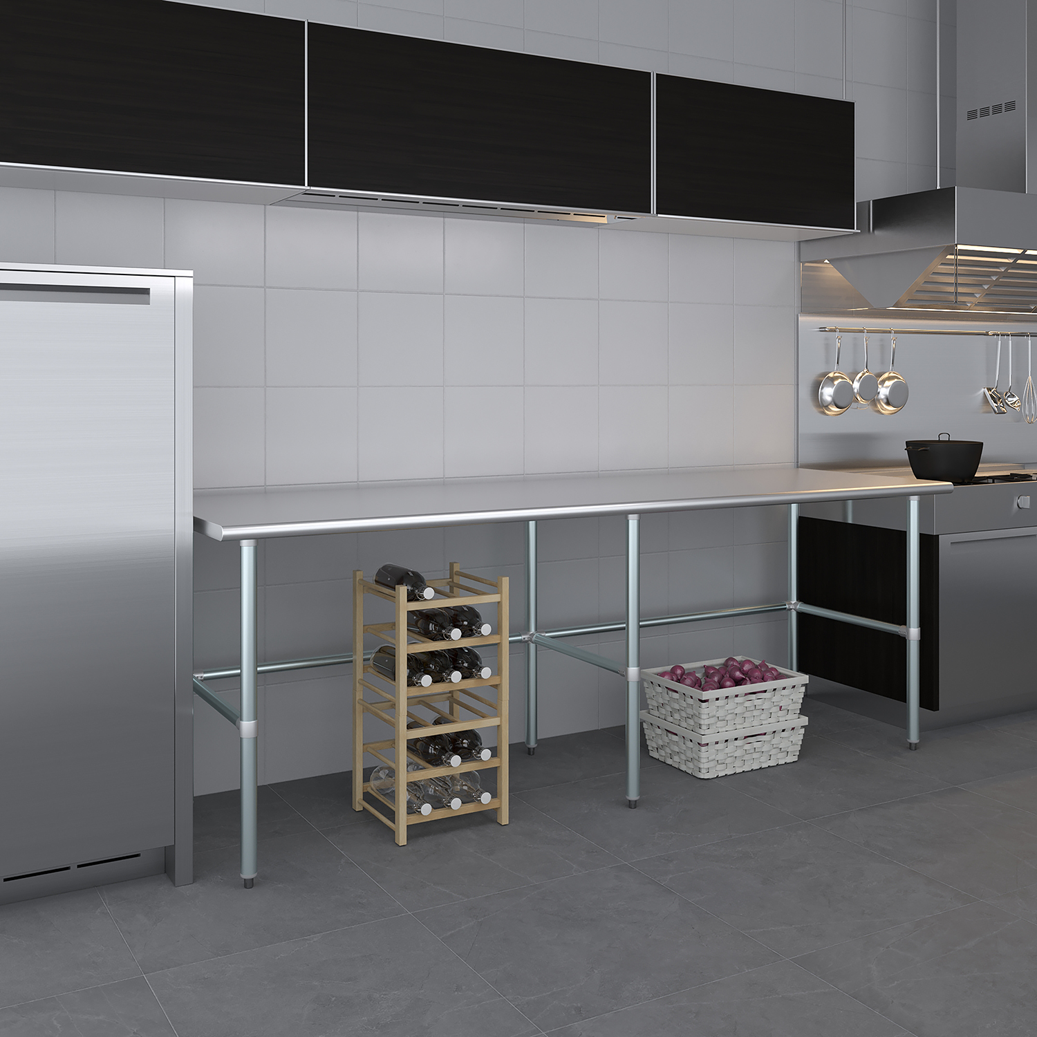 Measuring 30 inches by 96 inches, this work table offers a compact footprint that fits seamlessly into smaller spaces while still providing ample workspace for your projects. The clean, modern design complements any setting, adding a touch of professionalism to your environment. Whether you’re slicing ingredients in a busy kitchen, assembling components in a workshop, or conducting experiments in a lab, this stainless steel work table is a reliable and stylish addition to your workspace.