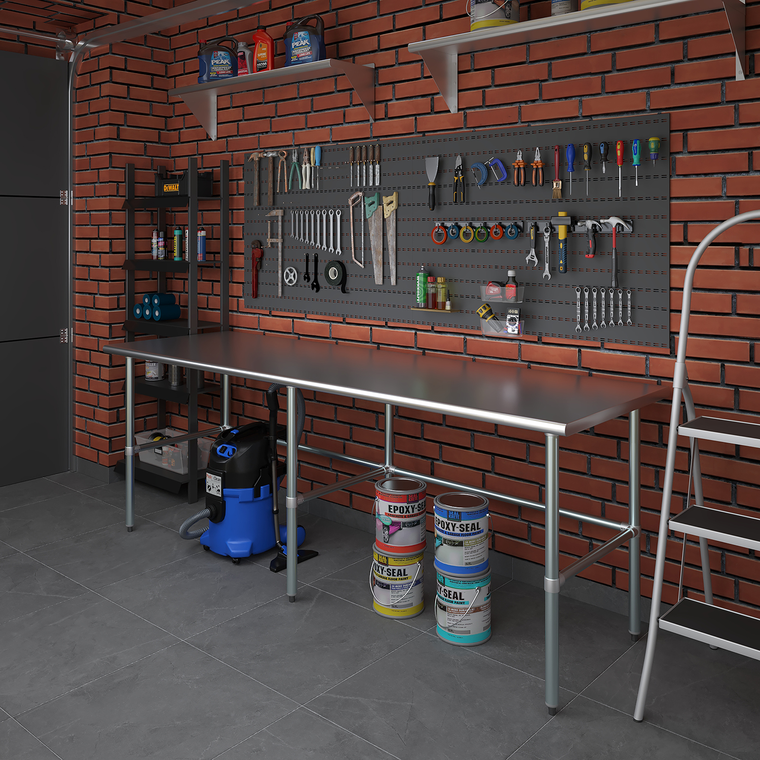 The open base design provides optimal storage space, allowing you to keep essential tools, equipment, and supplies within easy reach. This practical feature enhances workflow efficiency by minimizing the need for constant movement around your workspace. The sturdy construction ensures stability and can support a significant amount of weight, making it suitable for various heavy-duty tasks.