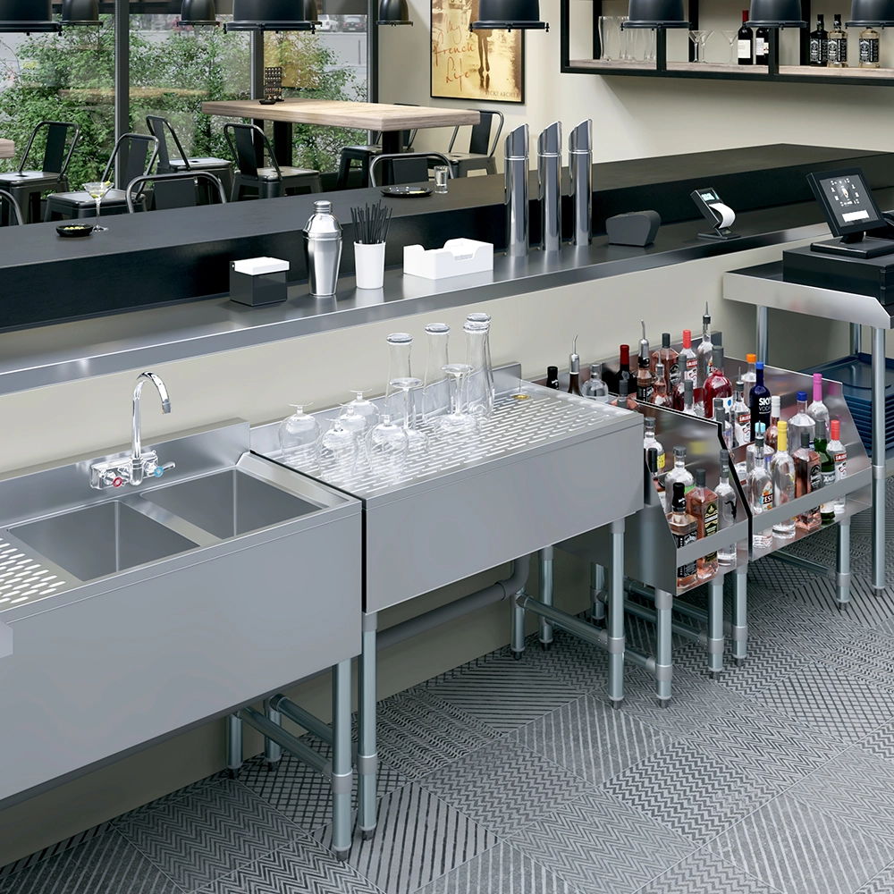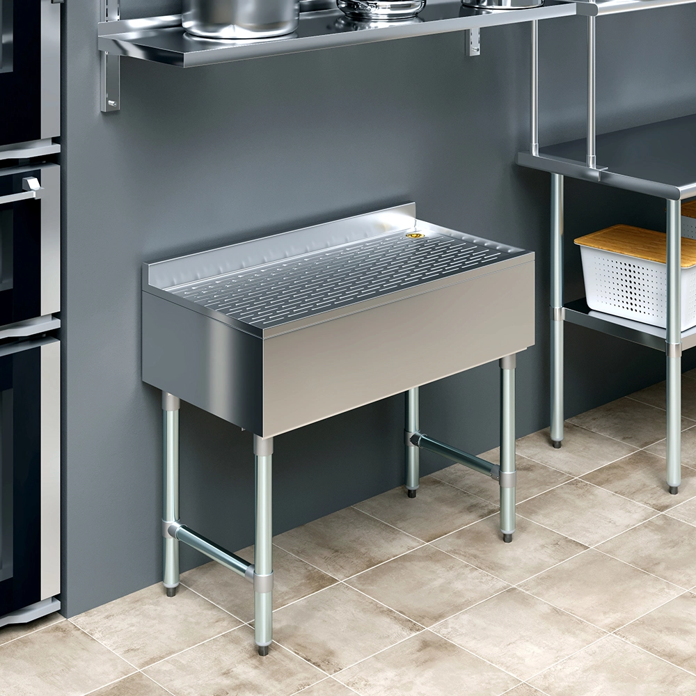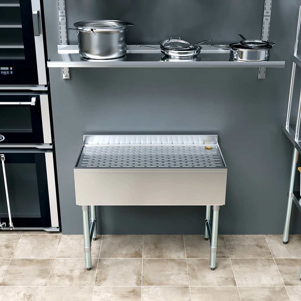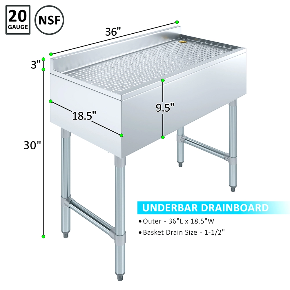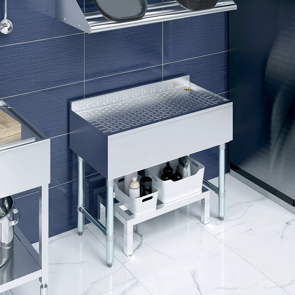 The 36 in. x 18 in. Stainless Steel Underbar Drainboard is a high-quality, durable solution designed to enhance efficiency in commercial bars, restaurants, and beverage service areas. Constructed from 18GA/304 stainless steel, this drainboard offers excellent resistance daily wear, ensuring long-lasting performance even in high-traffic environments. Its sleek, polished surface is easy to clean, helping maintain hygiene and a professional appearance.