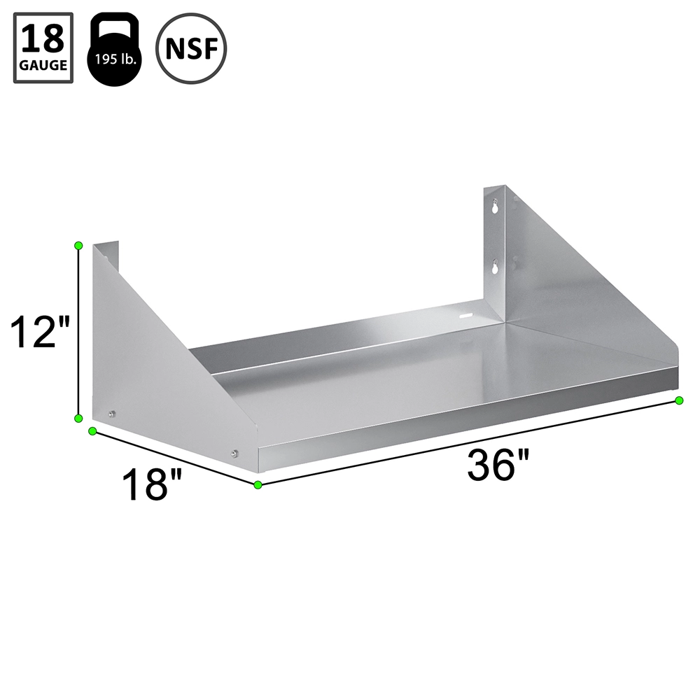 The shelf measures 36 inches in length and 18 inches in depth, providing ample space to store and display a variety of items, from kitchen utensils and appliances to tools and supplies. The addition of side guards is a thoughtful design feature that helps keep your items securely in place, preventing spills and ensuring a neat and orderly storage area. These side guards make the shelf particularly useful in busy kitchens, workshops, and other high-traffic areas where maintaining organization is crucial.