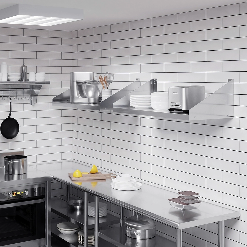 The sleek, modern design of the stainless steel wall shelf seamlessly blends with any décor, adding a touch of sophistication to your space. Its polished surface not only enhances its visual appeal but also makes cleaning and maintenance a breeze, promoting a hygienic environment in areas such as kitchens and food preparation zones.