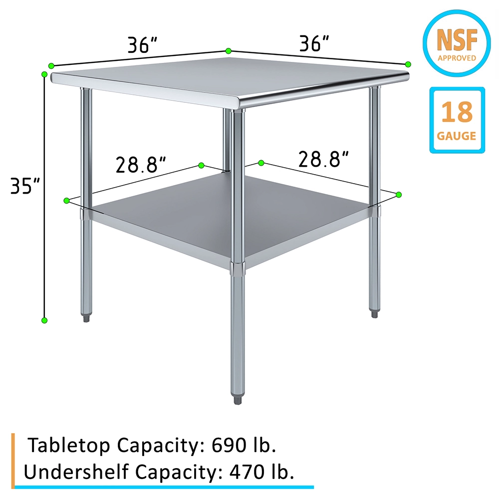 The spacious 36″ x 36″ tabletop provides ample workspace for a variety of tasks, including food preparation, equipment handling, and general workspace organization. Its smooth, polished surface is easy to clean and maintain, ensuring a hygienic environment that meets the high standards of any commercial setting.
