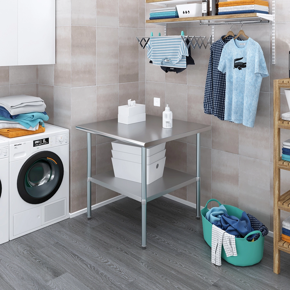 A key feature of this work table is the adjustable undershelf, which offers additional storage space for tools, supplies, and equipment. This undershelf can be positioned at your preferred height, allowing for customized storage solutions that meet your specific needs. Whether you need to store heavy equipment or small utensils, this versatile shelf enhances the functionality of your workspace by keeping essential items within easy reach.