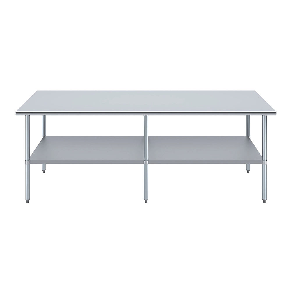 The spacious 36″ x 96″ tabletop provides ample workspace for a variety of tasks, including food preparation, equipment handling, and general workspace organization. Its smooth, polished surface is easy to clean and maintain, ensuring a hygienic environment that meets the high standards of any commercial setting.
