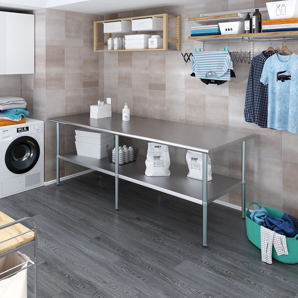 A key feature of this work table is the adjustable undershelf, which offers additional storage space for tools, supplies, and equipment. This undershelf can be positioned at your preferred height, allowing for customized storage solutions that meet your specific needs. Whether you need to store heavy equipment or small utensils, this versatile shelf enhances the functionality of your workspace by keeping essential items within easy reach.