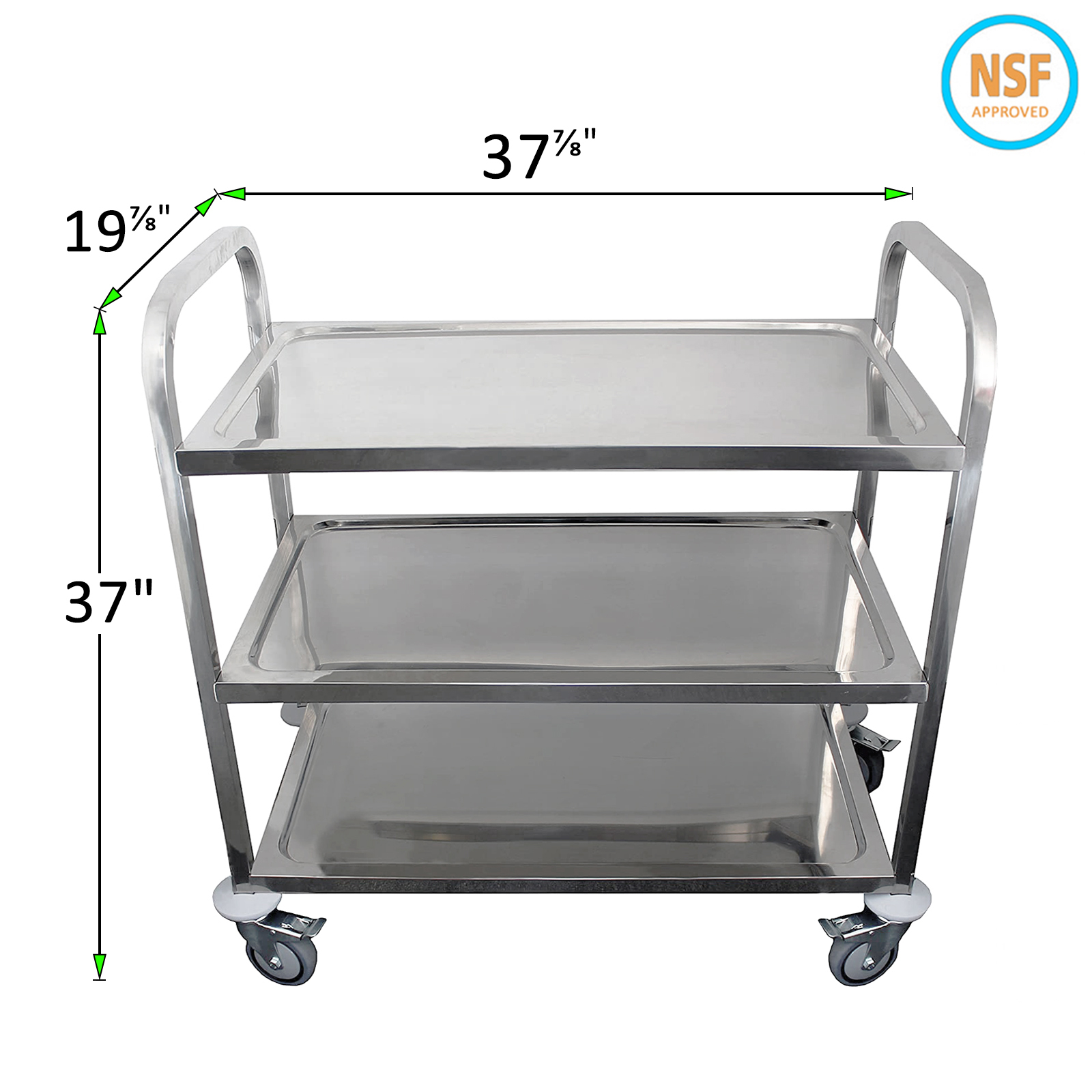 38 in. Legth X 20 in. Width Stainless Steel Dining Cart 3 Shelf With Wheels – Heavy Duty