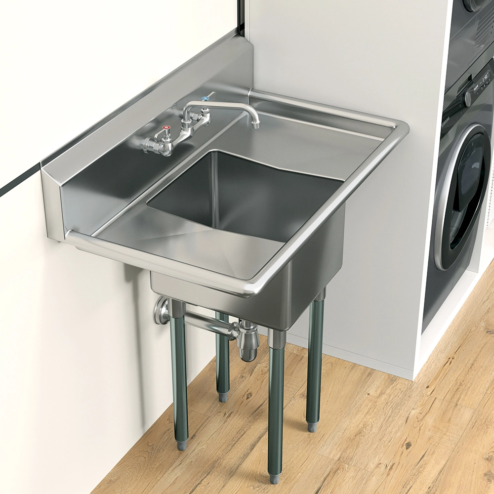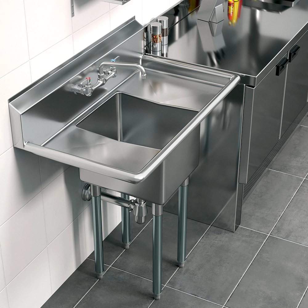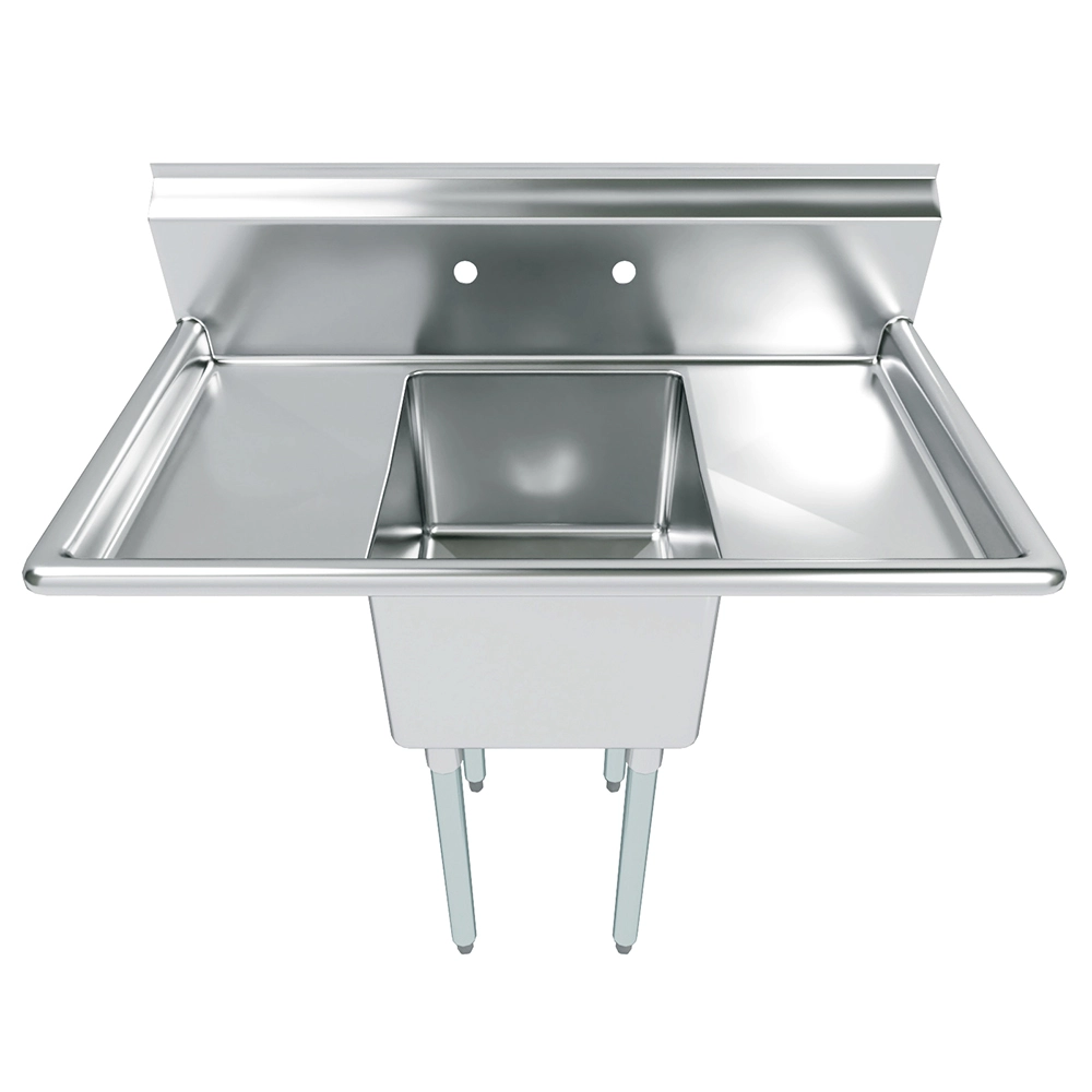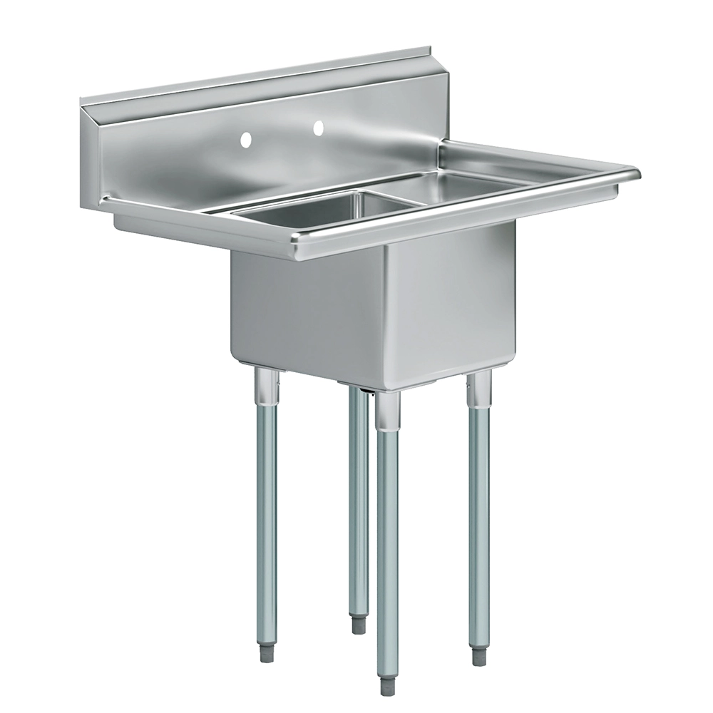 Built for stability and heavy-duty use, this sink features reinforced construction to handle the rigors of daily tasks. Its smooth stainless steel surface is easy to clean and maintain, promoting hygiene and efficiency in food preparation and cleaning operations. The polished finish adds a professional touch, complementing modern and industrial decor styles.