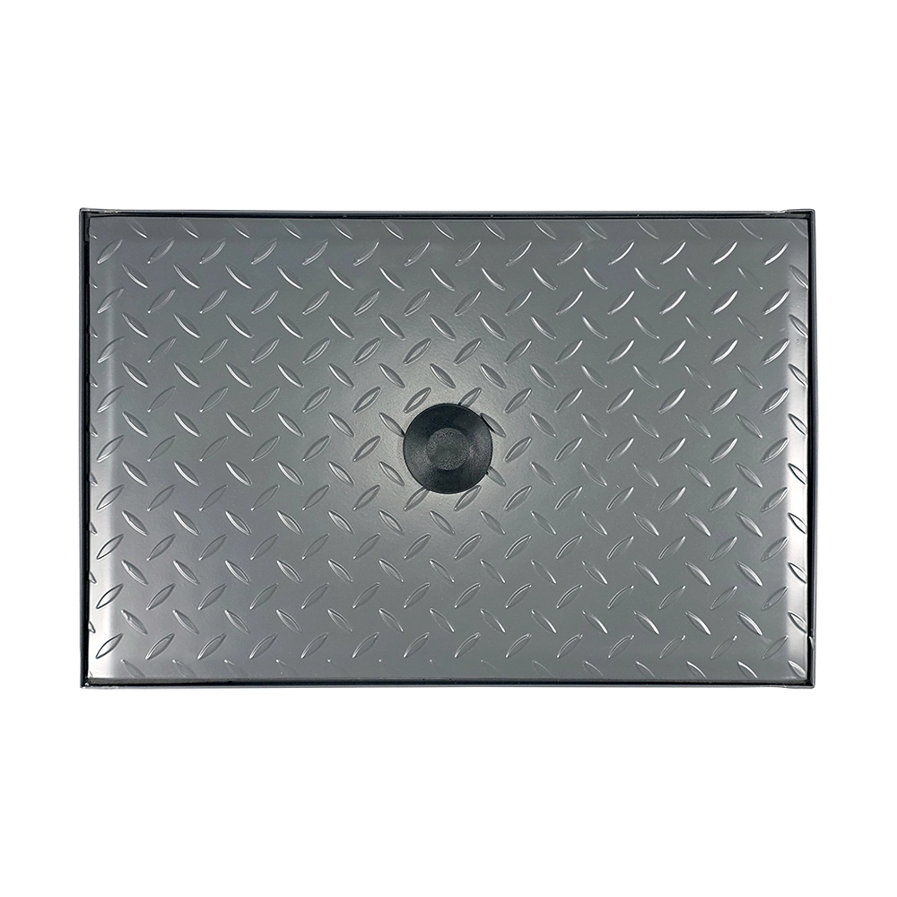 Diamond plate cover with a center bolt ensures a tight seal. Keeps unpleasant odors contained and maintains a clean, professional environment.