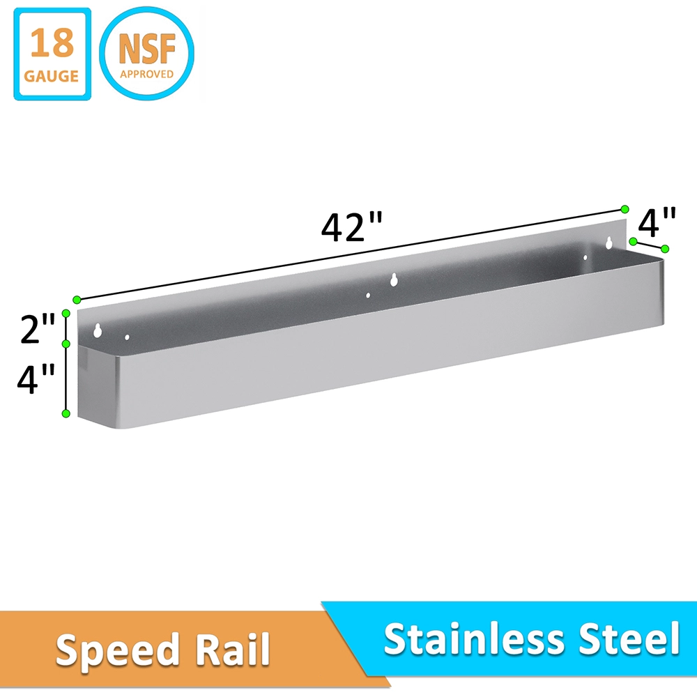 The single-tier design of this speed rail rack provides easy and quick access to frequently used bottles, making it a practical solution for busy bartenders and kitchen staff. Measuring 42 inches in length, it offers ample space to accommodate multiple bottles, from spirits and mixers in a bar setting to oils and sauces in a kitchen. This allows for a well-organized and streamlined workspace, helping you serve customers faster and with greater efficiency.