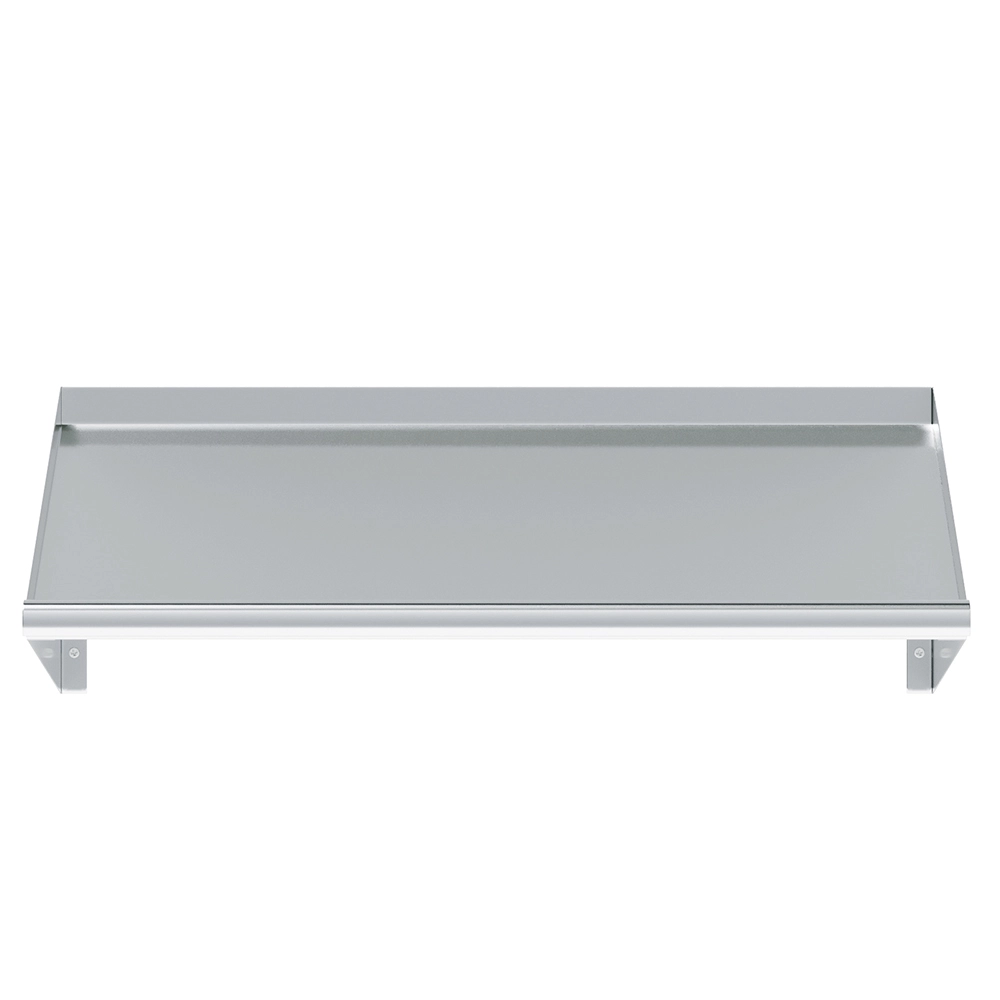 Easy to install, the 42 in. Stainless Steel Wall-Mounted Slanted Rack Shelf includes the necessary hardware for secure mounting, allowing for quick setup. Its sleek and professional design blends seamlessly into any environment, from modern kitchens to industrial utility spaces, enhancing both functionality and aesthetics.