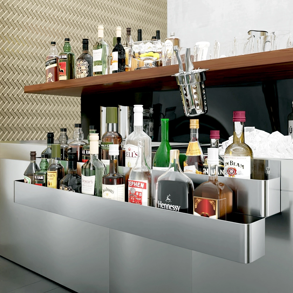 Ideal for a variety of settings, from bustling bars and nightclubs to busy restaurant kitchens, this double-tier speed rail rack is designed to withstand the rigors of daily use while maintaining its integrity and appearance. The enhanced storage capacity allows bartenders and chefs to work more effectively, reducing the time spent searching for ingredients and enabling faster service.