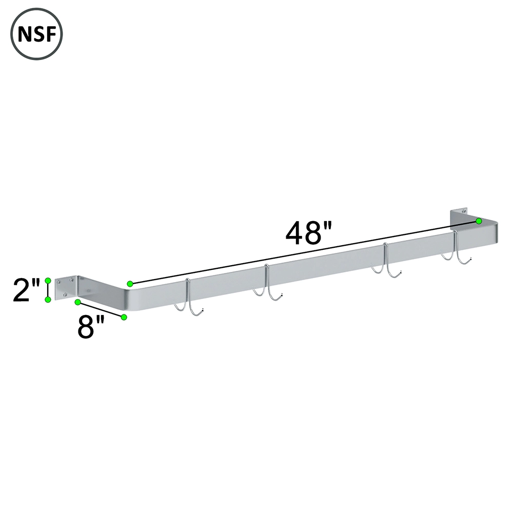 Maximize your kitchen space with the 48 in. Wall-Mounted Stainless Steel Single-Line Pot Rack, designed to provide an efficient and durable solution for organizing cookware. Crafted from 18GA/430 stainless steel, this pot rack is built to resist corrosion, rust, and stains, ensuring long-lasting performance in both home and commercial kitchens.