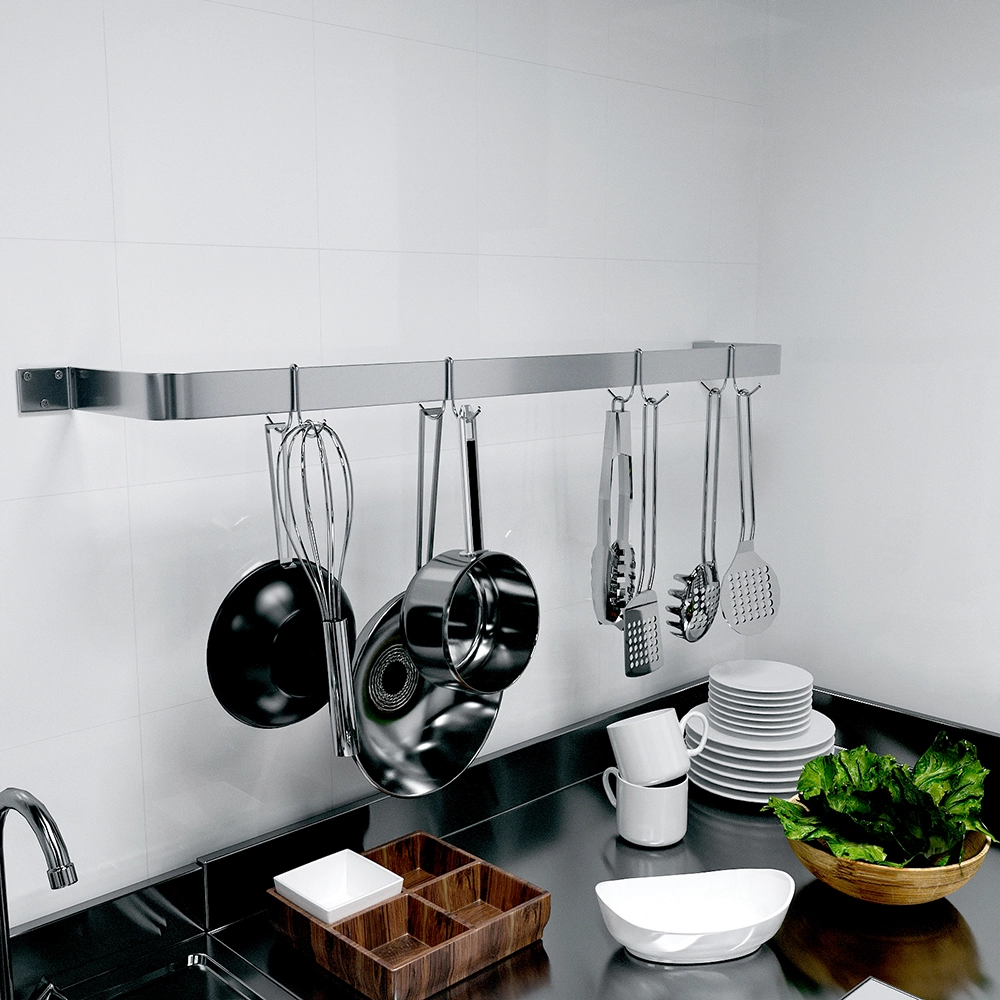 The sleek single-line design offers ample hanging space for pots, pans, and utensils, allowing you to free up valuable cabinet and counter space. By keeping your cookware and tools easily accessible, this pot rack helps streamline your workflow and maintain a clean, organized kitchen environment. Its minimalist style not only enhances functionality but also adds a professional, modern aesthetic to your space.