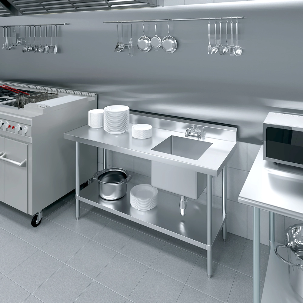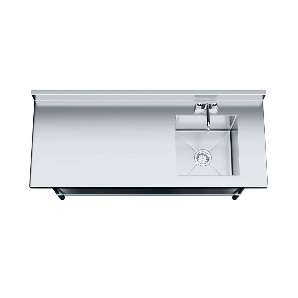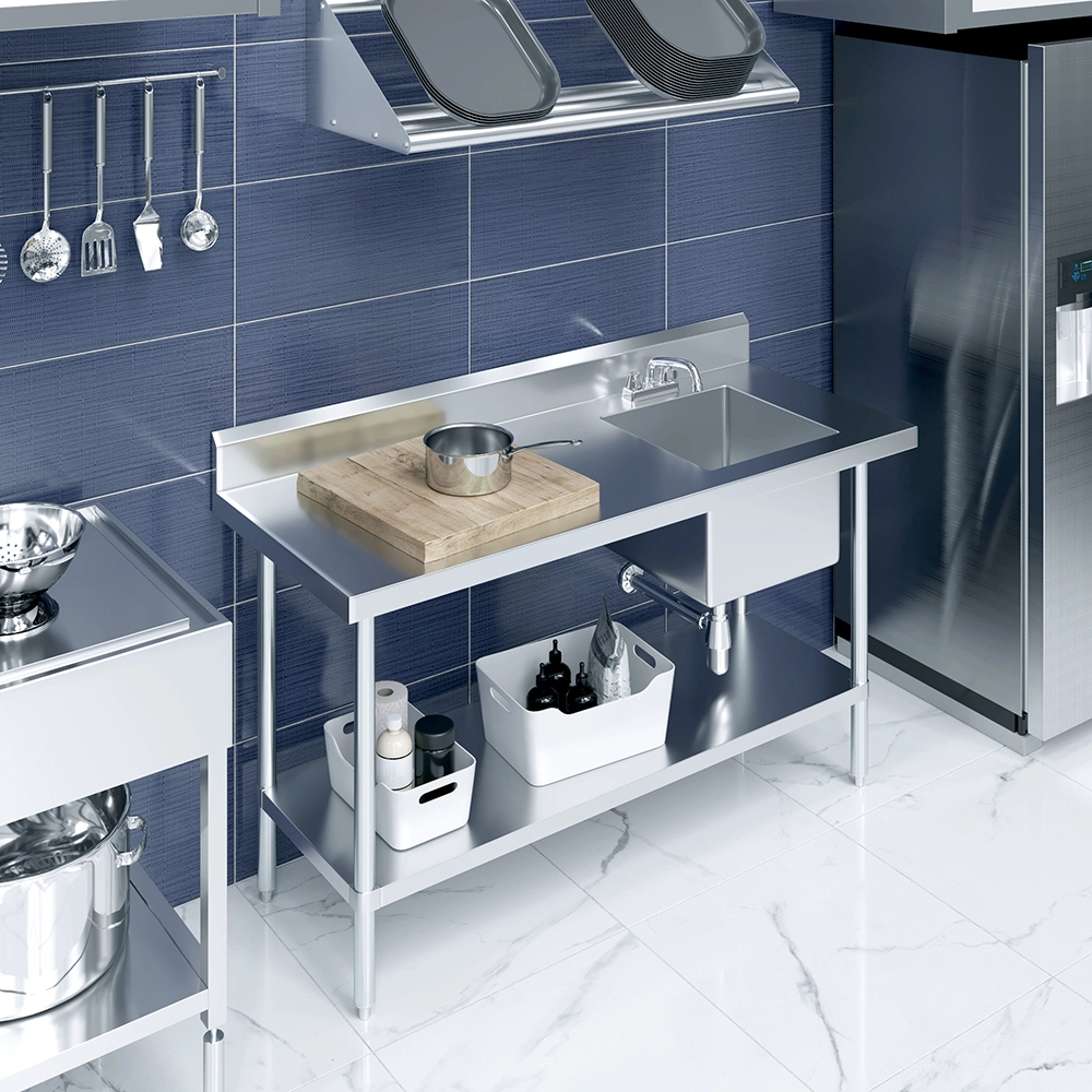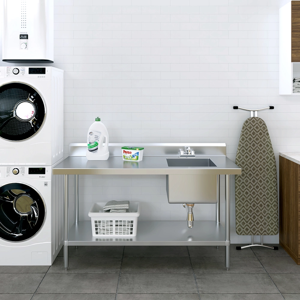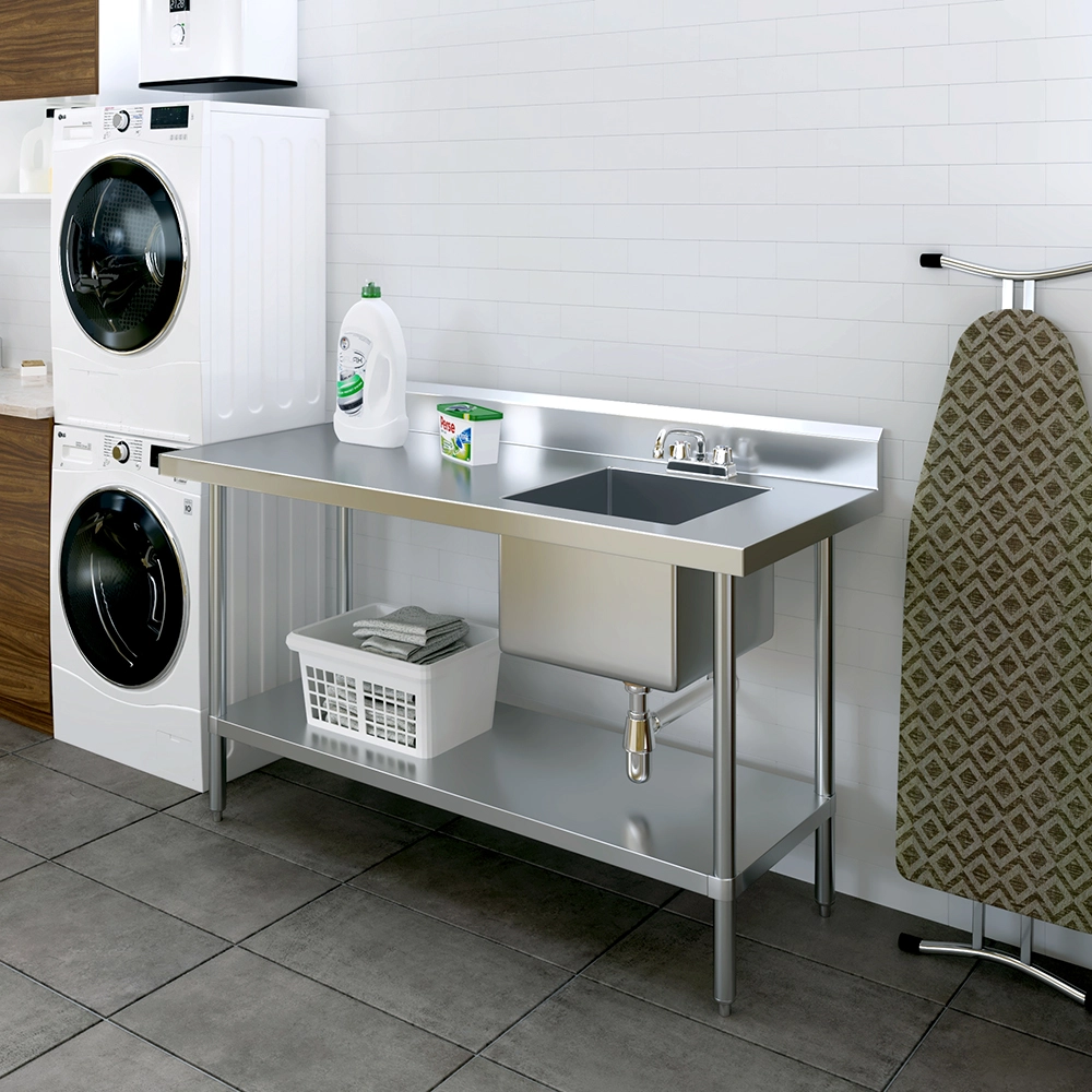The 60 in. x 24 in. Stainless Steel Work Table with Built-in Right Prep Sink and Faucet is a versatile and space-efficient solution designed to streamline food preparation and cleanup in commercial kitchens, restaurants, and catering environments. Constructed from 18GA/430 stainless steel, this unit offers excellent durability and easy maintenance, making it ideal for high-demand foodservice operations.