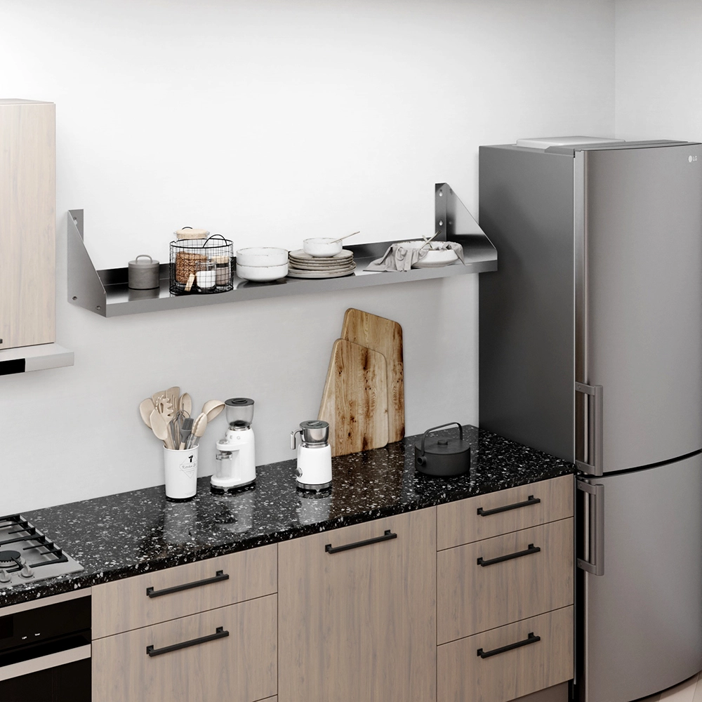 The sleek, modern design of the stainless steel wall shelf seamlessly blends with any décor, adding a touch of sophistication to your space. Its polished surface not only enhances its visual appeal but also makes cleaning and maintenance a breeze, promoting a hygienic environment in areas such as kitchens and food preparation zones.