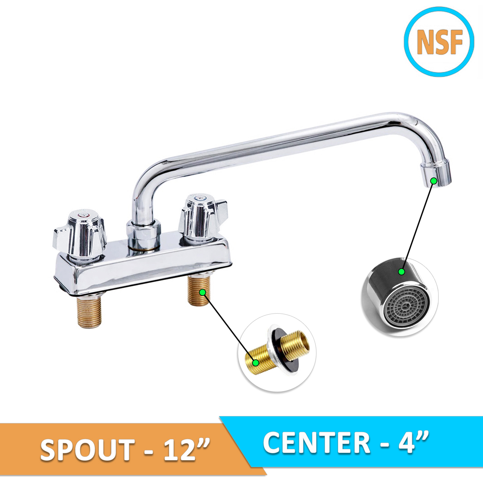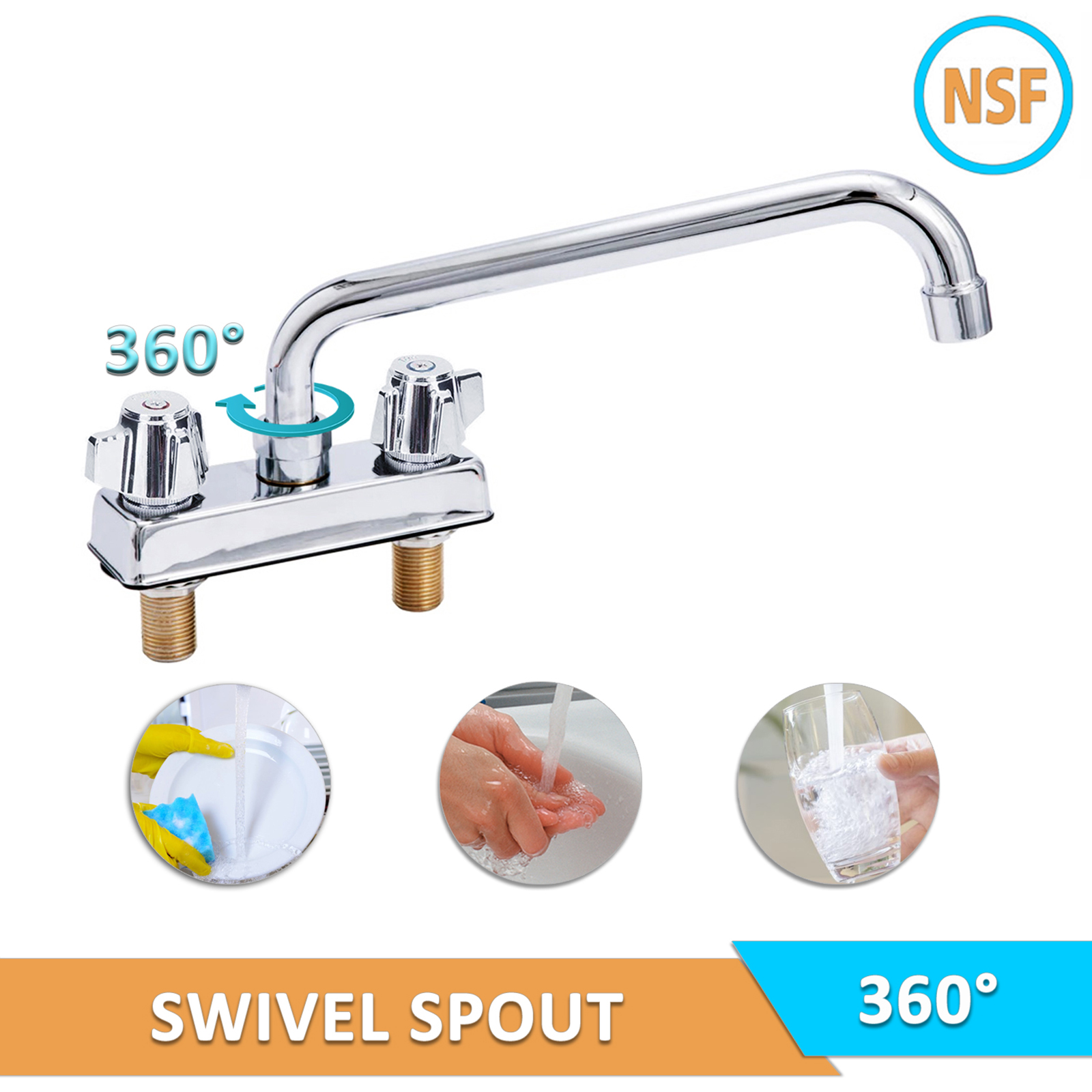 Introducing the Deck Mount Faucet with a 12″ Swivel Spout and 4″ Centers, a top-tier solution for enhancing the functionality and efficiency of any commercial kitchen or workspace. Designed with versatility and ease of use in mind, this faucet is perfect for a variety of washing and cleaning tasks, providing the flexibility and durability needed in high-demand environments.