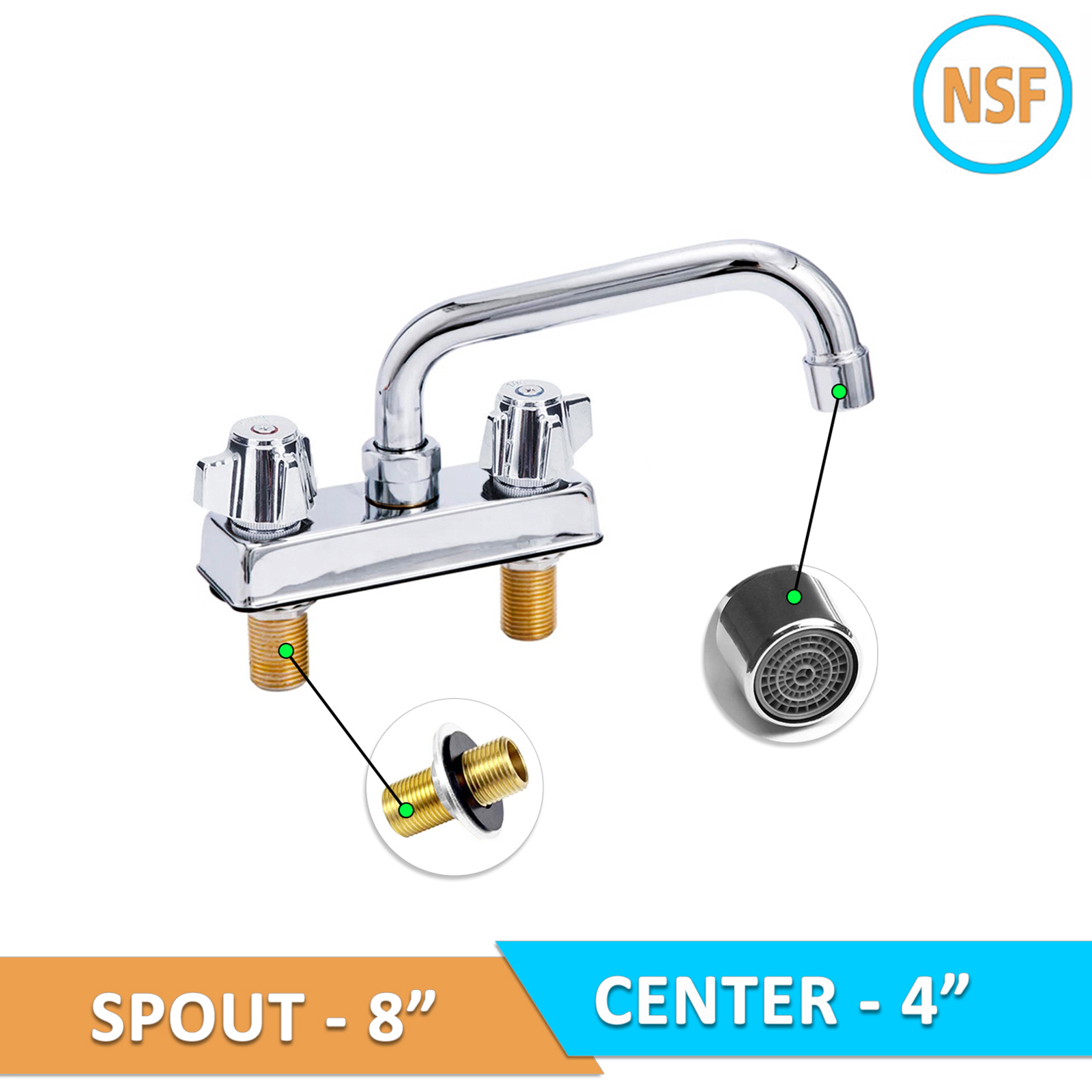 Constructed from qualty materials, this deck mount faucet guarantees exceptional durability and resistance. The robust construction ensures it can withstand the rigors of daily use in a busy commercial environment, providing reliable service for years to come. The sleek and polished finish not only adds a touch of sophistication to your workspace but also makes cleaning and maintenance a breeze.
