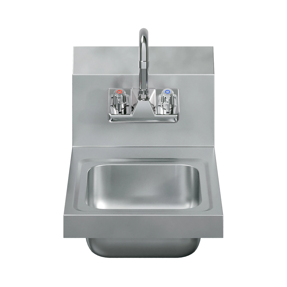 This hand sink is equipped with a pre-drilled hole for easy faucet installation and a convenient drain for efficient water disposal. Its sleek stainless steel finish adds a modern touch to any professional setting, complementing a variety of décor styles while offering a professional, polished look.