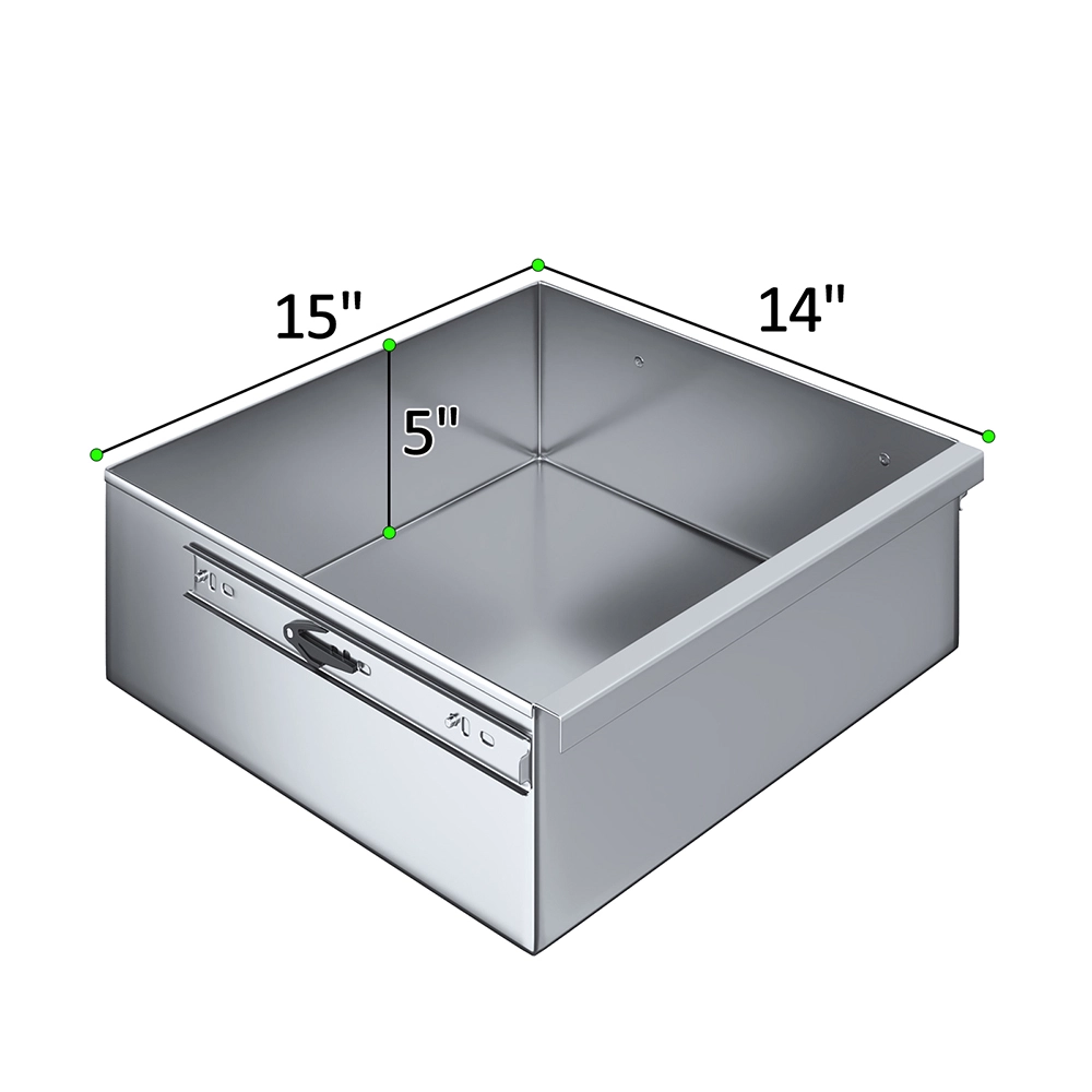 The 15″ Wide x 14″ Length Stainless Steel Table Drawer is a practical and stylish addition to any environment where organized storage is essential. Invest in this stainless steel drawer to improve the efficiency and organization of your workspace, ensuring that your tools and essentials are always readily accessible and neatly stored. Experience the difference that a well-designed storage solution can make in your daily operations with this durable and reliable stainless steel table drawer.