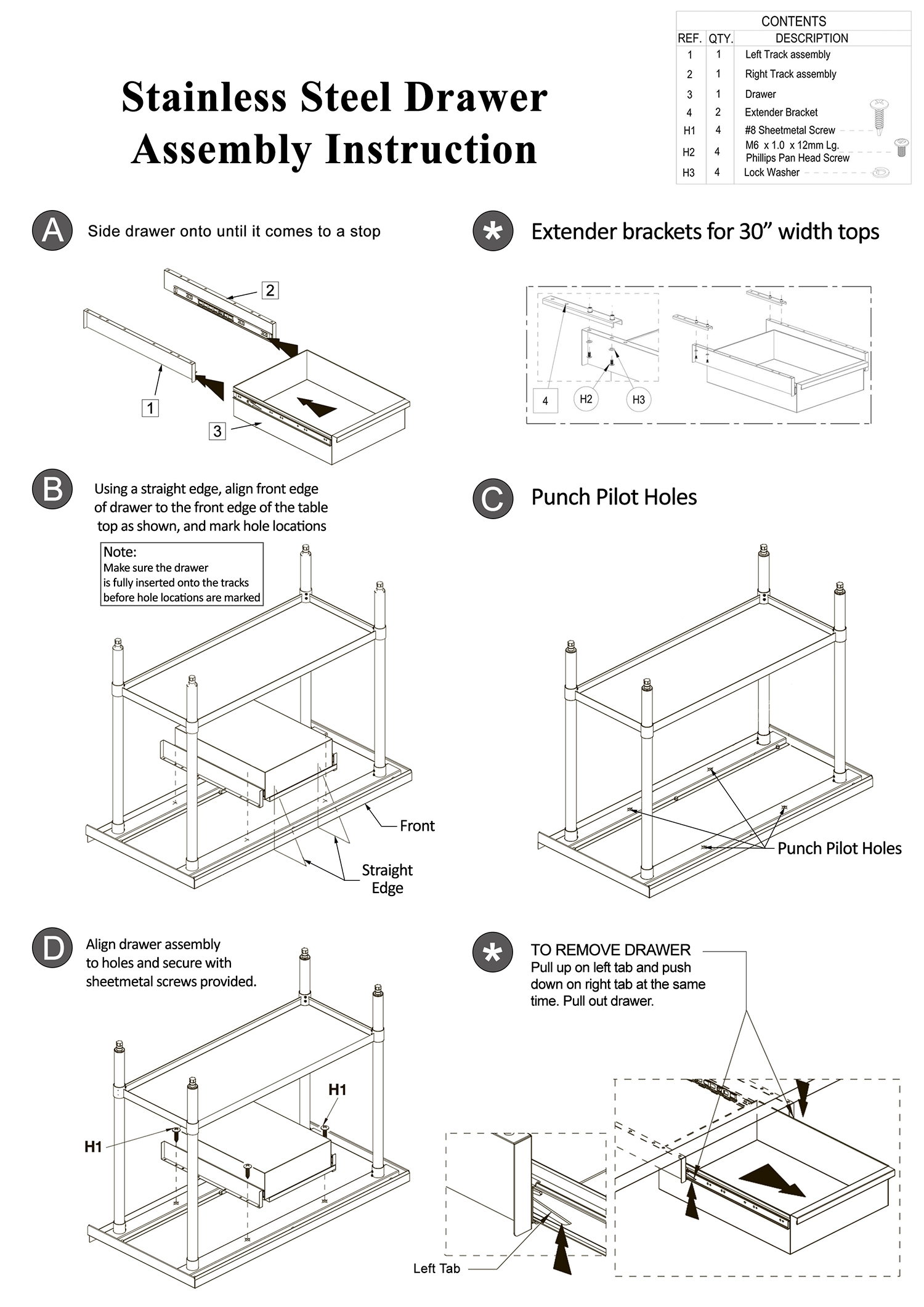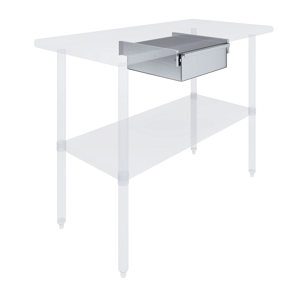 Installation is straightforward, with all necessary mounting hardware included, allowing for quick and easy setup. Whether you’re looking to add storage to a worktable, prep station, or any other work surface, this drawer integrates seamlessly, enhancing the overall functionality of your workspace.