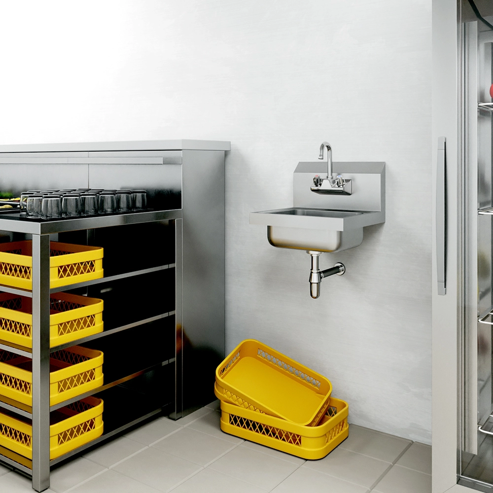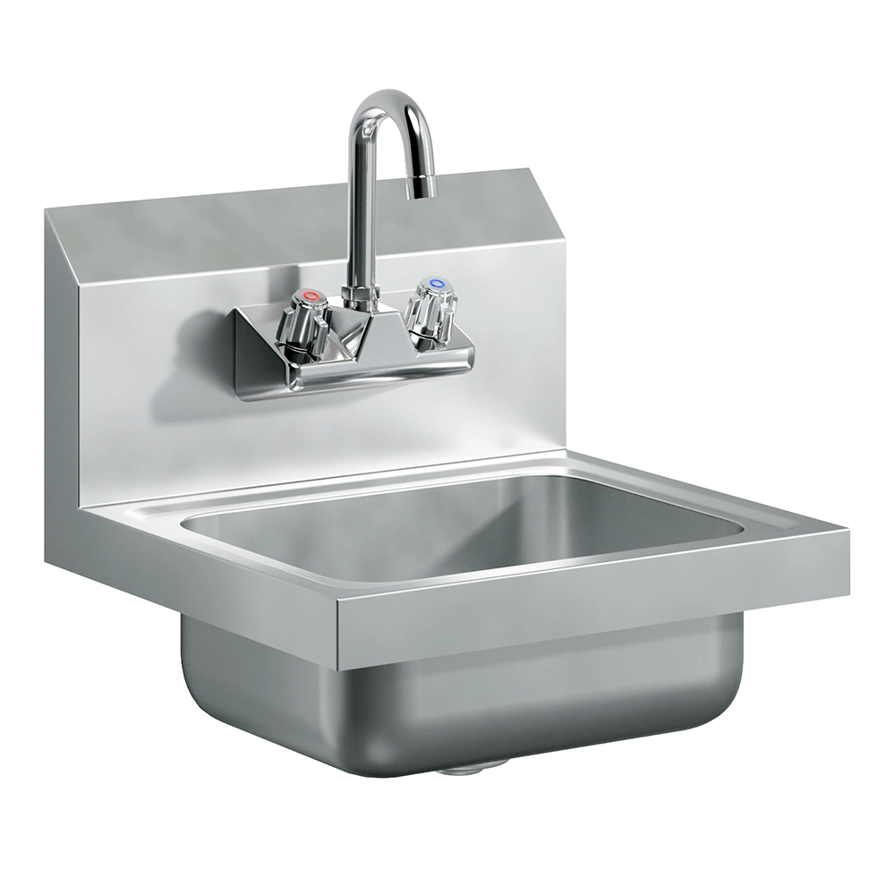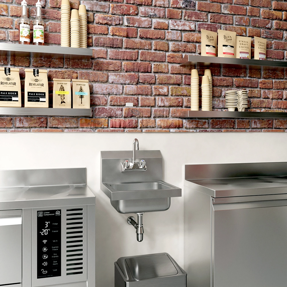 The Stainless Steel Hand Sink, measuring 15 in. x 15 in., is a versatile and compact solution designed to promote hygiene and efficiency in both commercial and residential spaces. Crafted from 20GA/304 stainless steel, this sink offers exceptional durability and ease of cleaning, making it ideal for environments requiring frequent use and strict sanitation standards. Its polished finish adds a sleek, professional look while ensuring long-lasting performance.