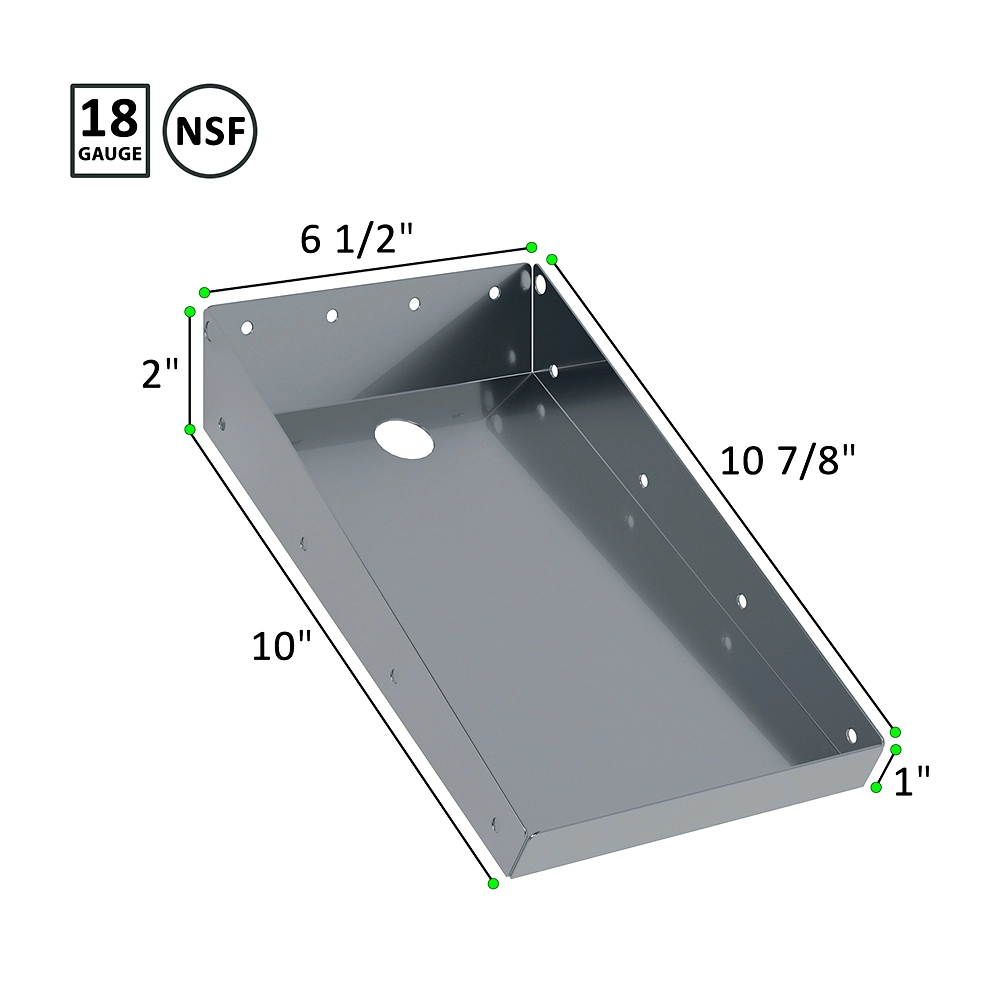 The Stainless Steel Printer Tray (10 in. x 6-1/2 in. x 2 in.) is a durable and practical solution for supporting ticket printers and small equipment in commercial environments. Constructed from 18-gauge 430 stainless steel, it offers excellent resistance to rust, corrosion, and daily wear, making it ideal for restaurants, cafés, food trucks, and POS stations. The compact footprint fits easily on counters or work surfaces while providing a stable platform to keep printers secure and organized.