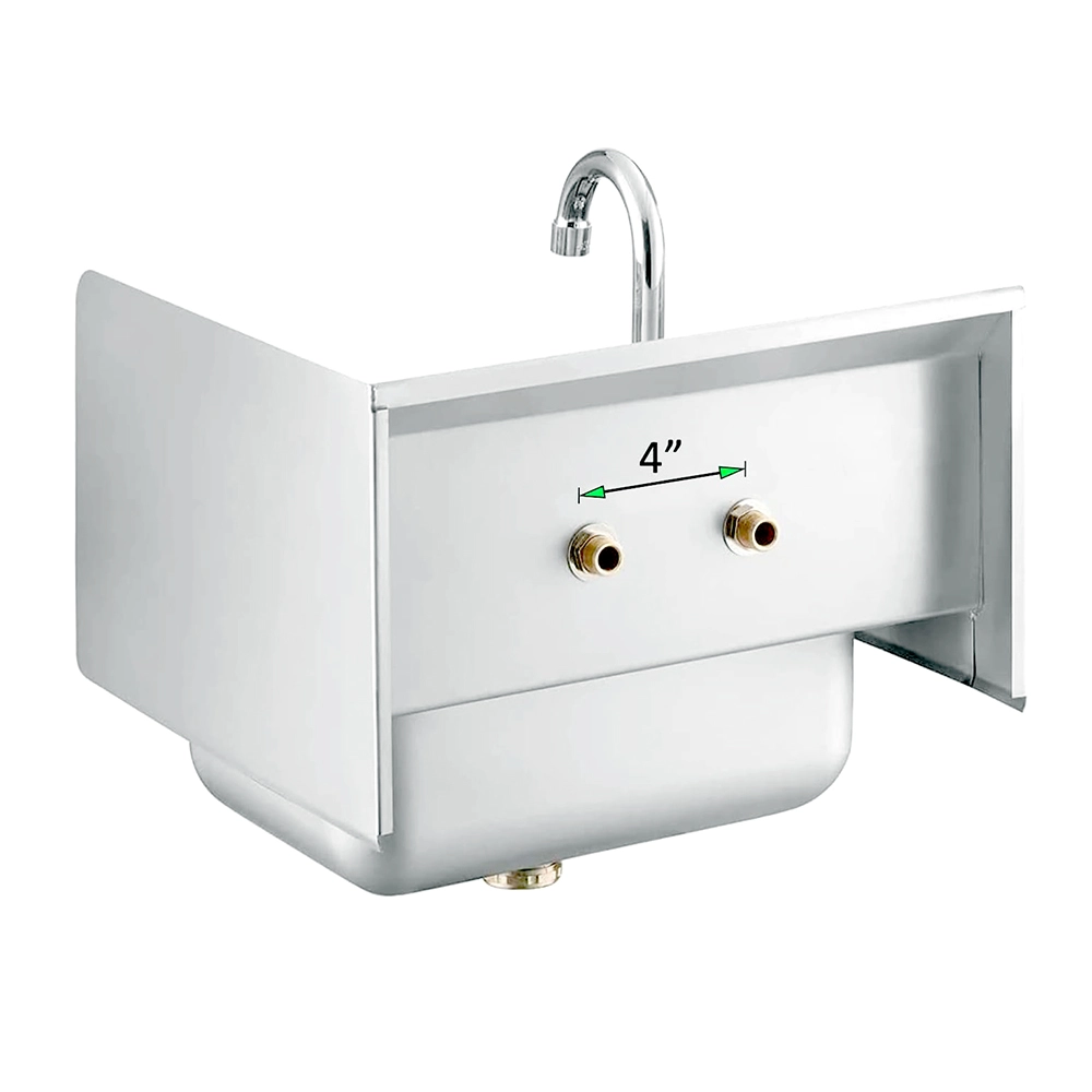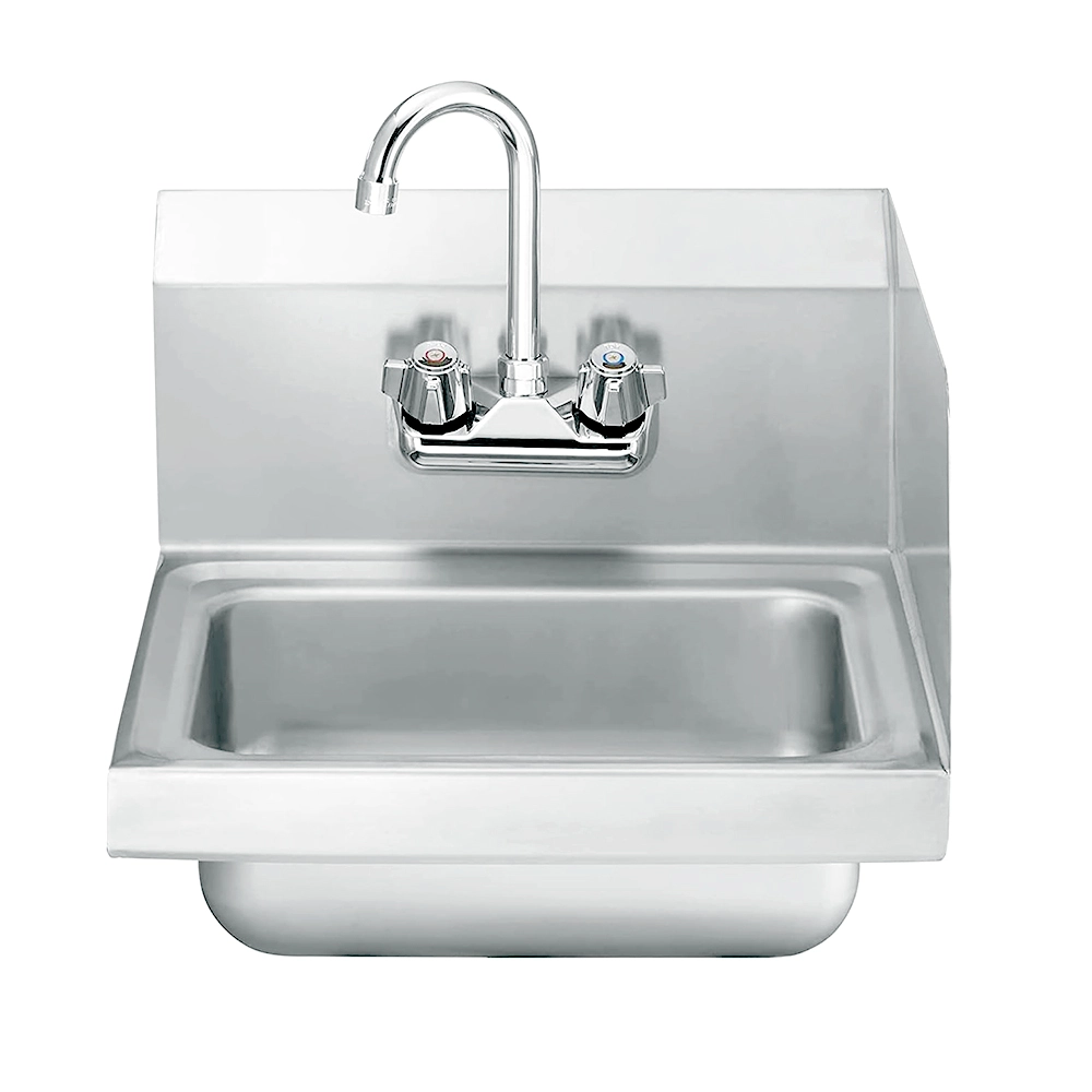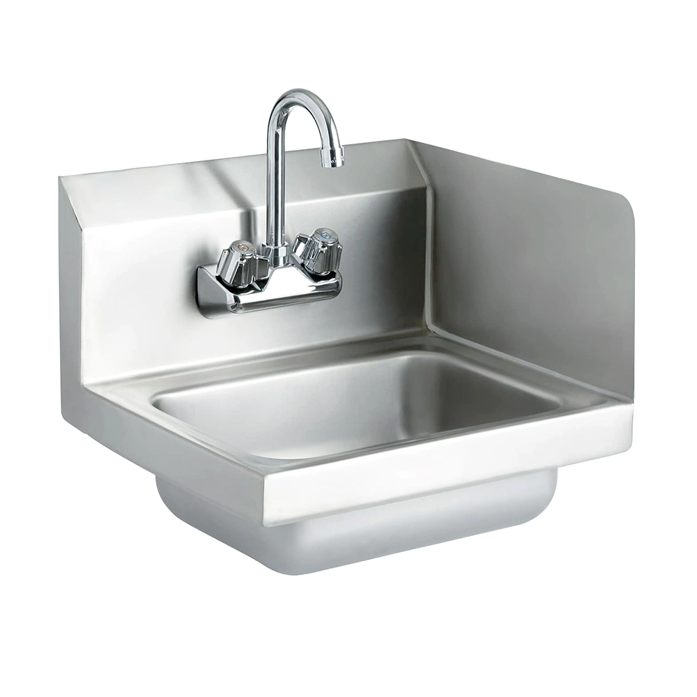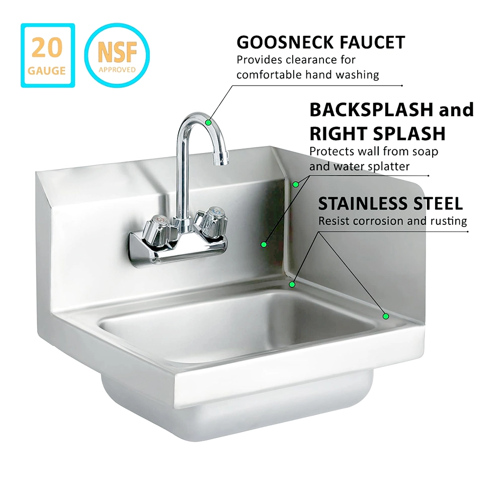 Equipped with a right-side splash, this sink helps prevent water from splashing onto surrounding surfaces, keeping work areas cleaner and more sanitary. The included gooseneck faucet provides ample clearance for comfortable and efficient handwashing, making it ideal for high-traffic environments where sanitation is a priority.
