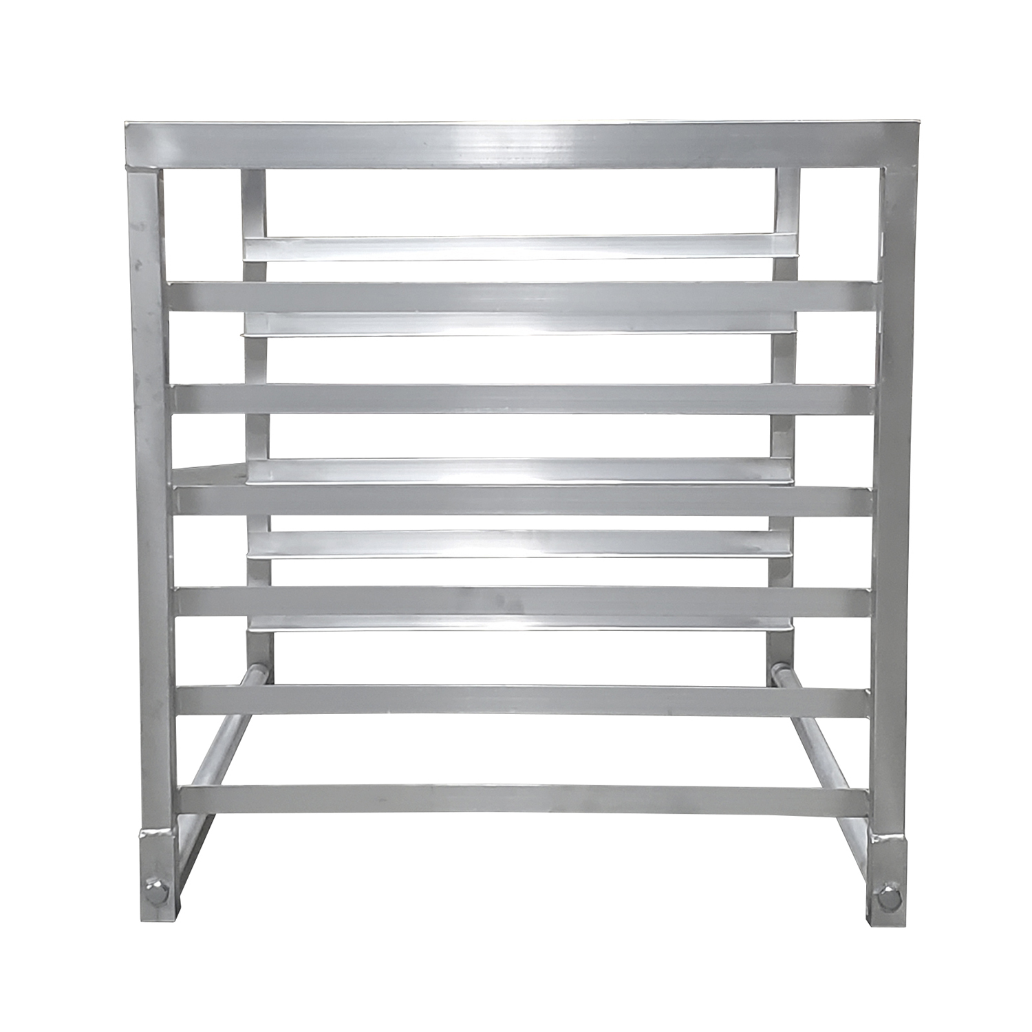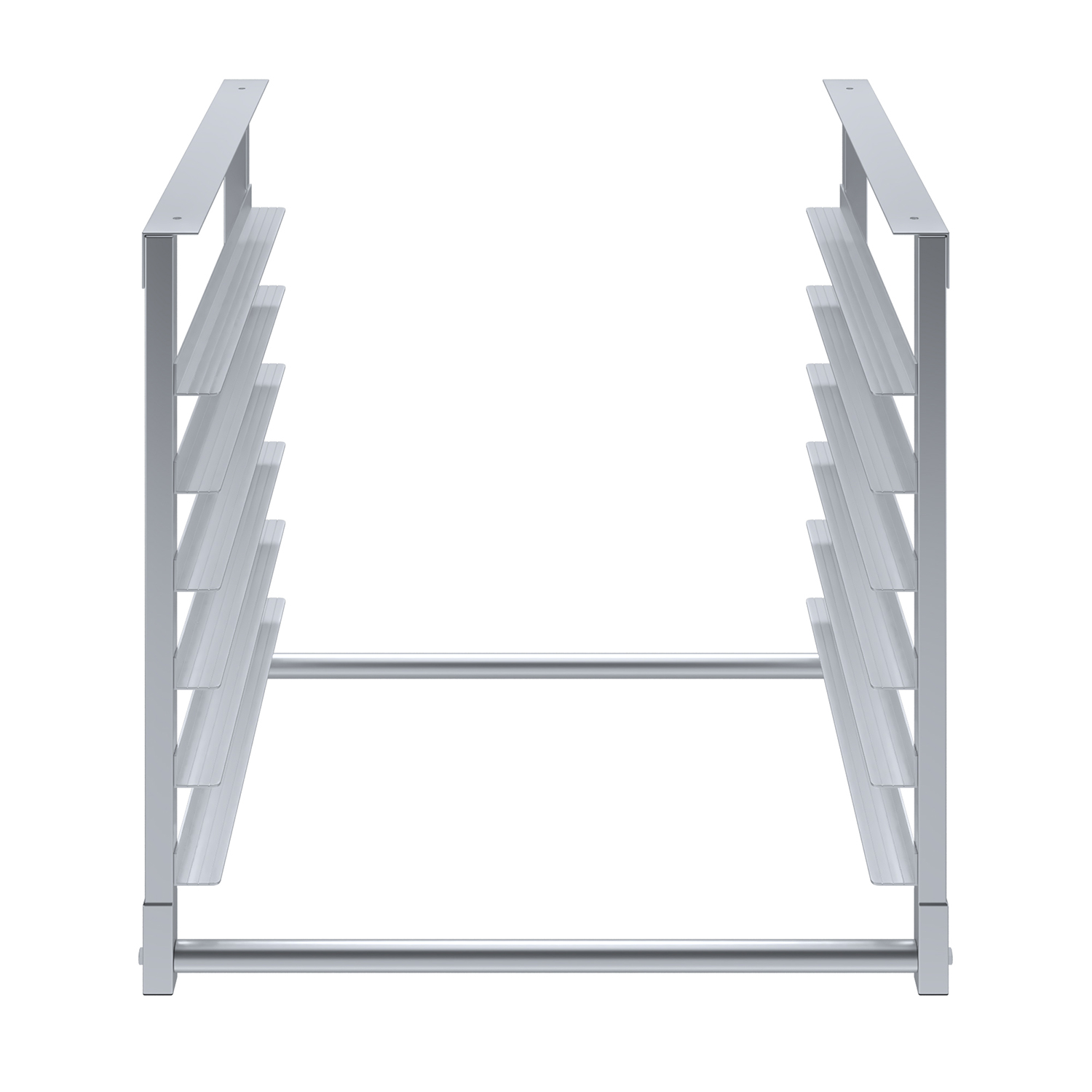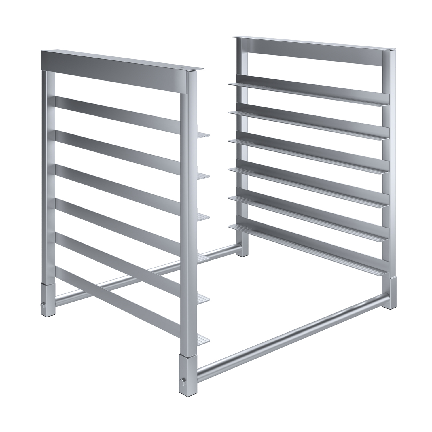 Constructed from aluminum, this rack is built to last, offering exceptional resistance, ensuring a long service life even in the busiest of kitchens. The lightweight yet sturdy design ensures that the rack can support heavy loads without compromising on stability. Its sleek and modern appearance seamlessly integrates with any kitchen decor, adding a touch of professionalism to your workspace.
