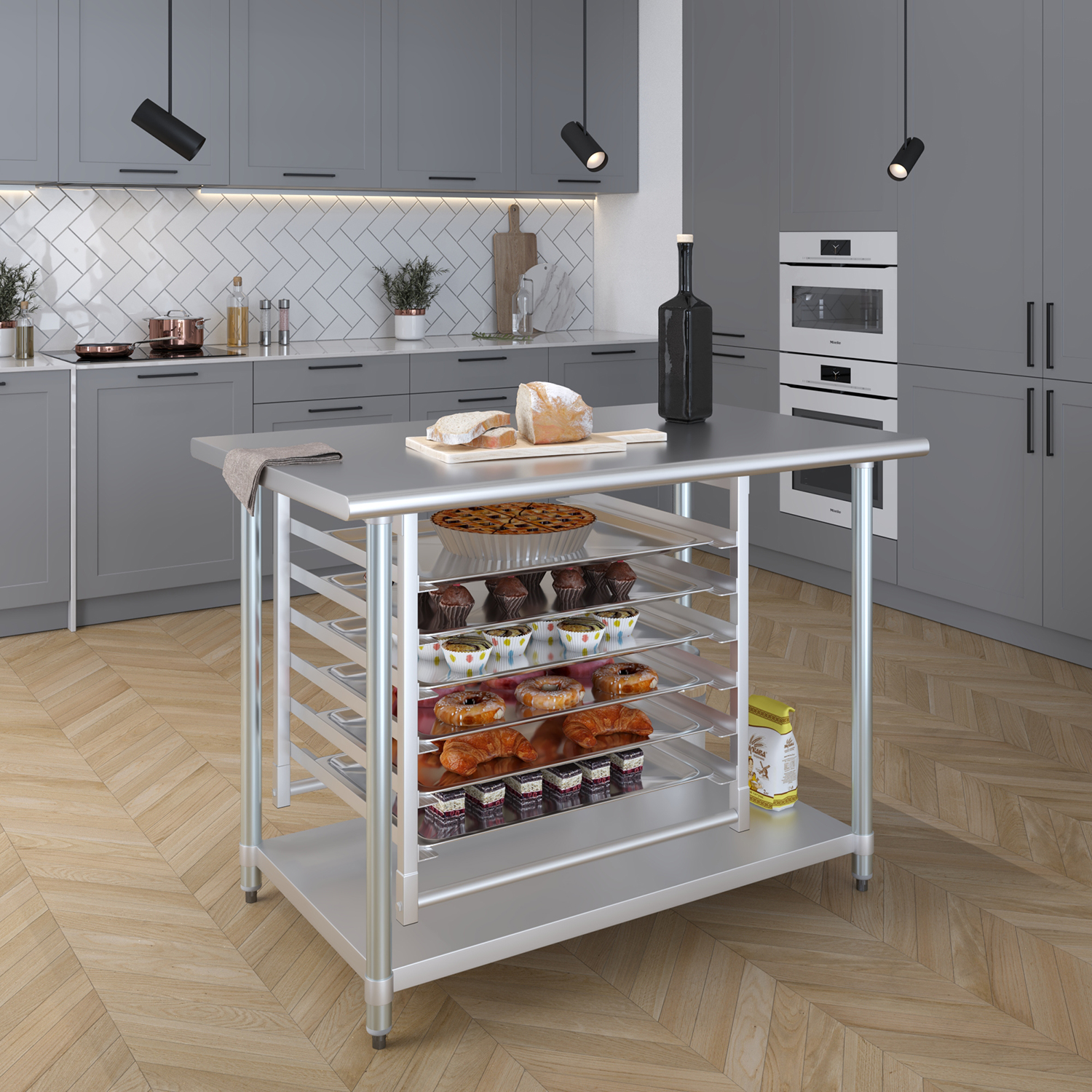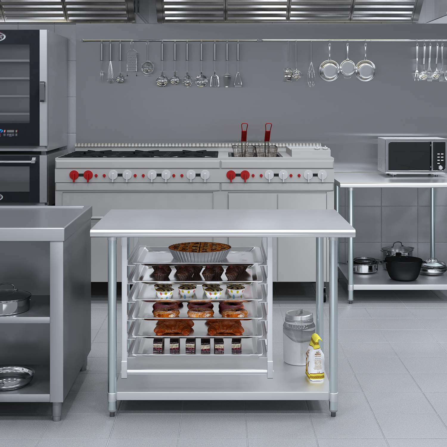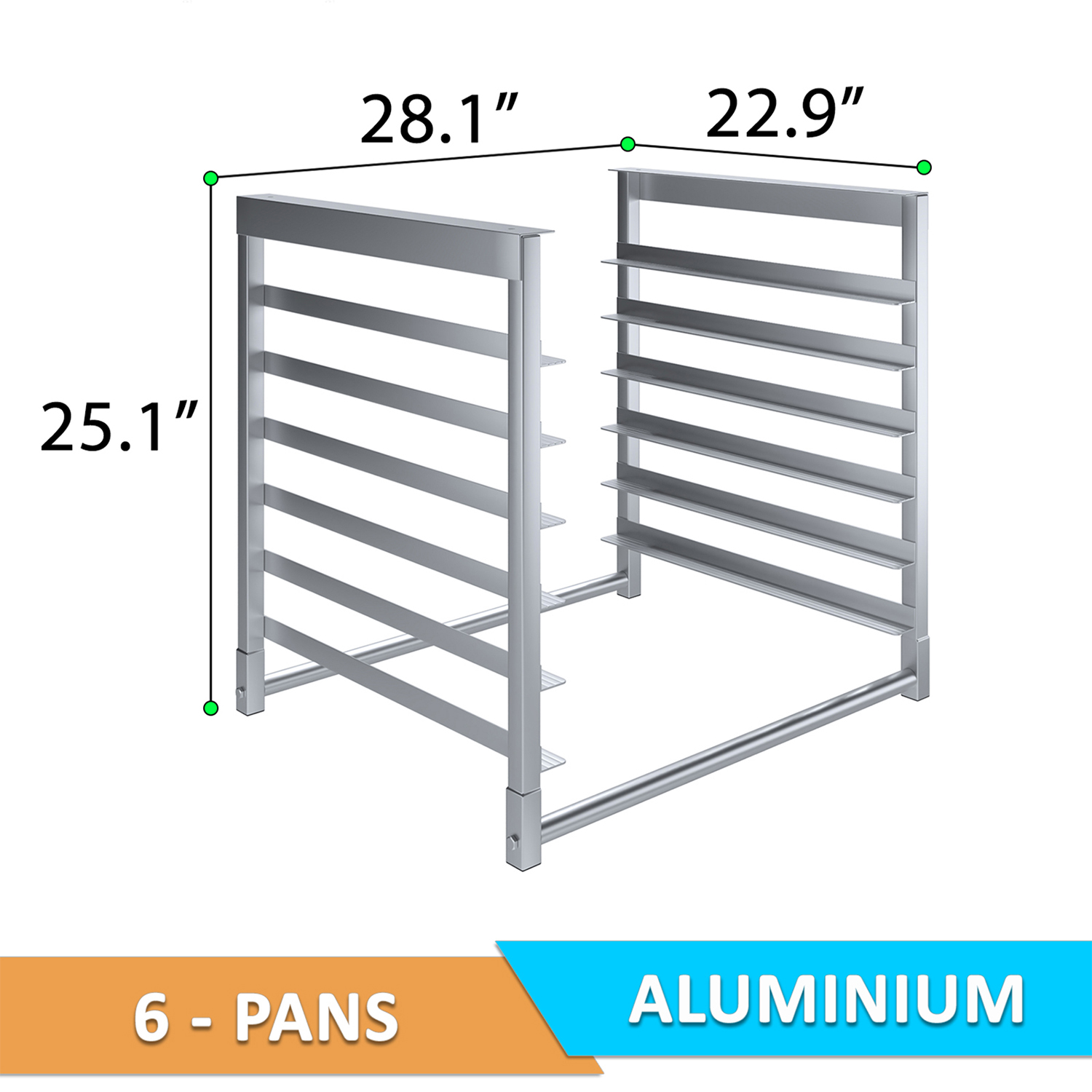Constructed from aluminum, this rack is built to last, offering exceptional resistance, ensuring a long service life even in the busiest of kitchens. The lightweight yet sturdy design ensures that the rack can support heavy loads without compromising on stability. Its sleek and modern appearance seamlessly integrates with any kitchen decor, adding a touch of professionalism to your workspace.