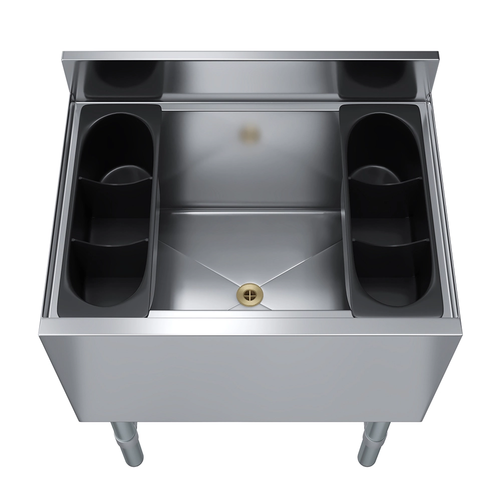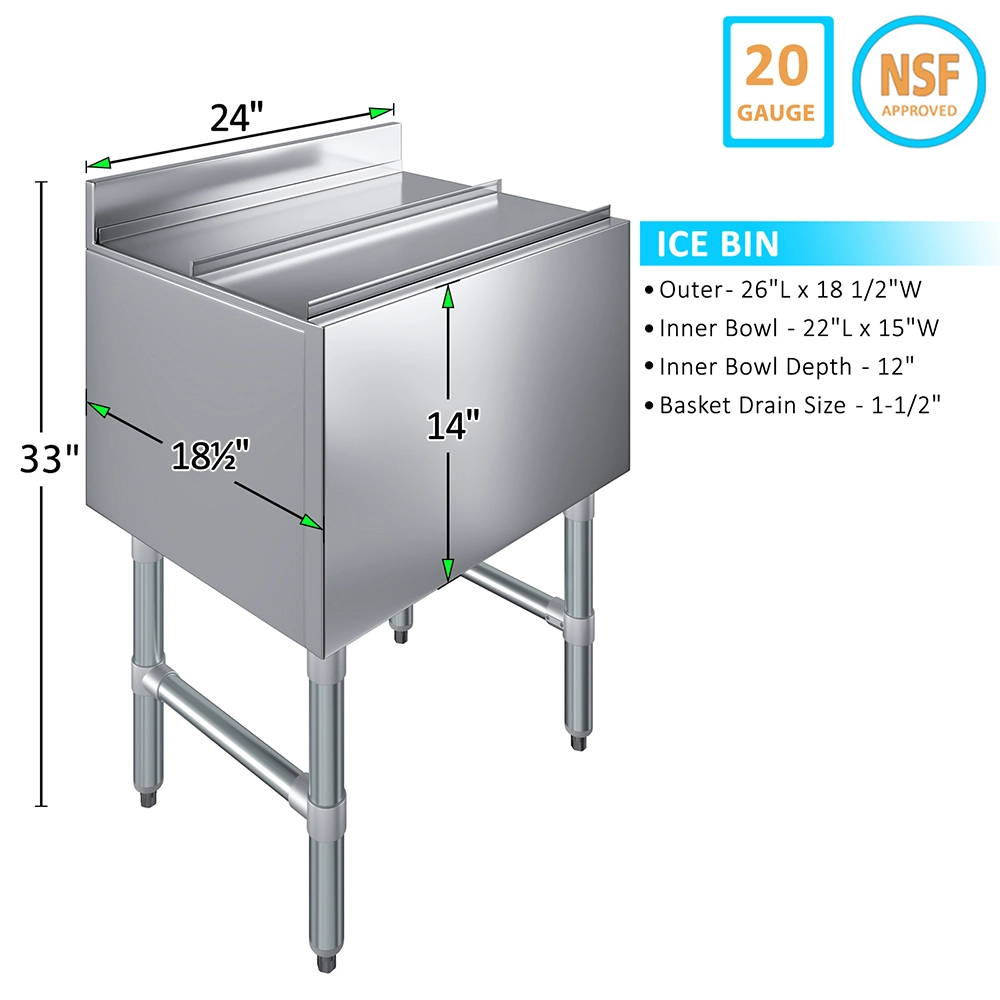 Constructed from 20GA/304 stainless steel, this underbar ice bin is built for durability, resisting corrosion, dents, and wear from daily use. The spacious interior offers ample capacity to handle high-volume ice demands during busy service hours, making it an essential tool for bartenders and staff. Its sturdy construction ensures long-lasting performance, even in fast-paced environments.