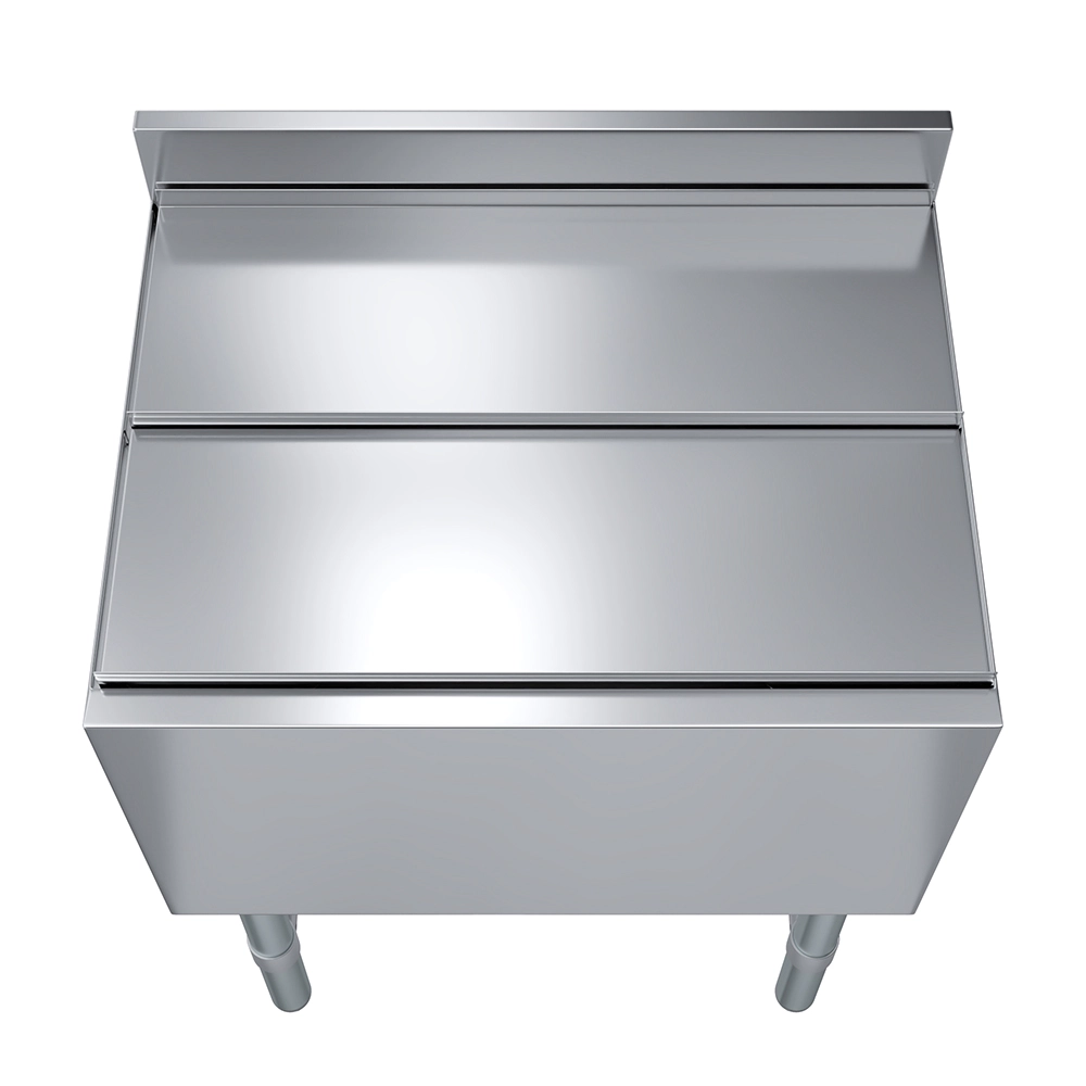Designed for practicality, the ice bin includes smooth edges and an easy-to-clean interior, maintaining hygiene standards and simplifying maintenance. Its ergonomic height and convenient dimensions improve workflow, enabling quick and efficient access to ice for preparing drinks and cocktails.